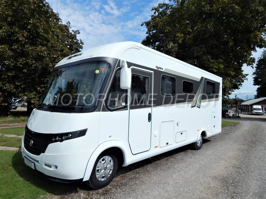 A Stunning rear island bed model by one of Germany's finest A class manufacturers Frankia. This I740QD model is packed with goodies and is the perfect travel companion for up to 4. First registered in 25/07/18 it has only had one owner from new and covered 11,000 miles, it is presented in excellent condition with a comprehensive service history including 2 Fiat mechanical services & 2 Habitation checks up to date. The F-Line based on Fiat Ducato AlKo chassis with a 2.3 litre 180 bhp turbo diesel engine with the Comformatic 6 speed automatic box. The cab benefits from: Air Conditioning; Cruise Control; Traction Control Plus; Hill Descent; Blaupunkt multi media system with Navigation, DAB, Bluetooth, Aux & USB in; Electric Heated Mirrors; Twin View Reversing Camera screen. There is a large full width blind to the front screen that can be dropped from the top or lifted from the bottom as well as an electric blind fitted for added security and warmth. The side windows also have Remis blinds.