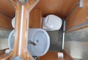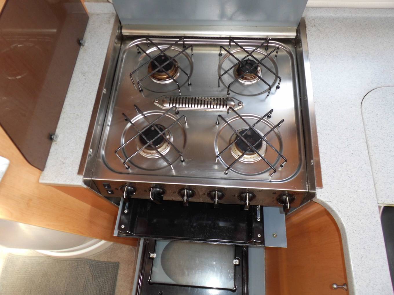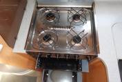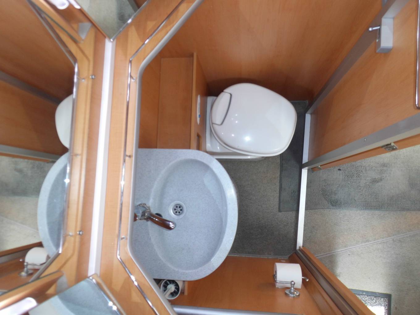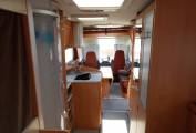 Inside this Frankia you have a fixed rear transverse double bed measuring approximately 75 x 48 inches. There is plenty of cupboard and locker space to store all of your clothes. Next to the bedroom is a large separate shower and on the opposite side is the bathroom with a cassette toilet with electric flush, a wash basin with mixer tap, a large mirror and some storage space. Next up as you move forwards is the kitchen which has a 4 gas burner hob, a gas oven and grill, a sink with mixer tap and a large 160 litre Dometic 3 way fridge freezer with automatic selection.