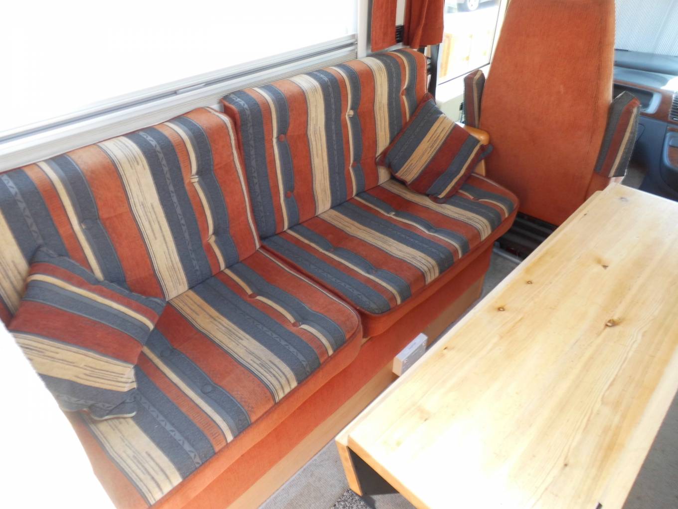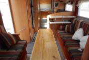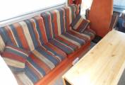 The lounge has 2 side facing sofas and a huge dining table. Both front seats are Captain Chairs so they swivel around allowing 6 people to dine comfortably. Above the cab you have a large drop down double bed that will easily sleep 2 adults in real comfort.