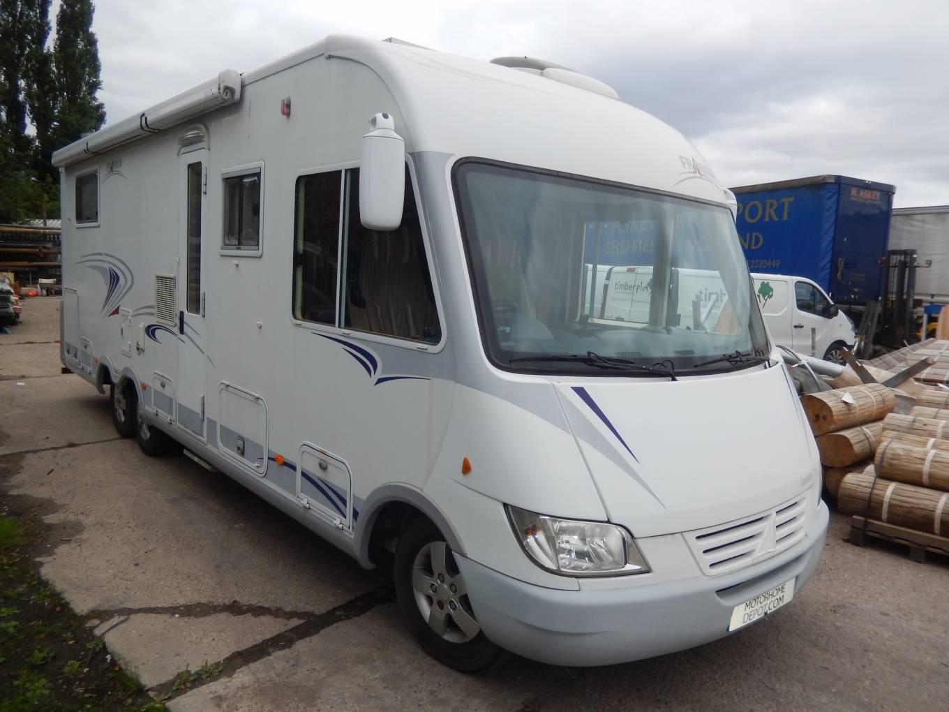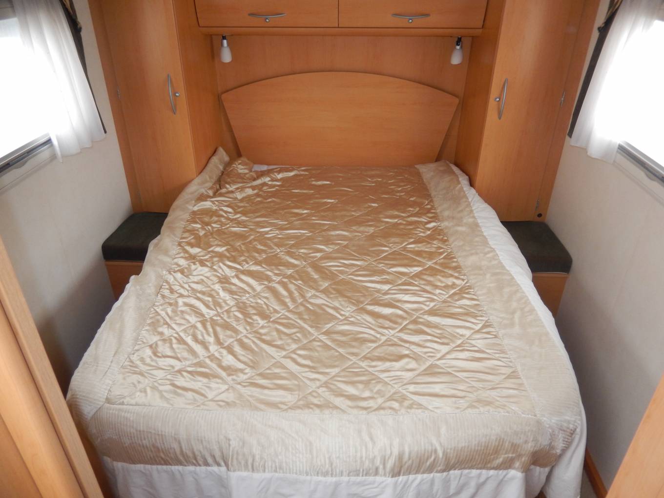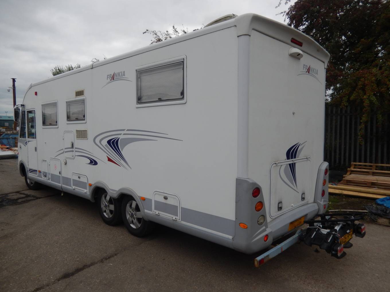 Frankia Luxury Classic i800 based on a 2.8 Fiat diesel with a 5 speed manual gearbox. This luxury motorhome comes with great extras such as a satellite dish, full sized fridge freezer, solar panel, habitation air con and many more. The main feature is its rear fixed island bed. This area can be used as a bedroom with ensuite as the washroom has an adaptable door to close this area off from the rest of the motorhome. In the washroom you have a sink with taps, toilet cassette and a separate shower cubicle. Moving into your kitchen area you have a full oven with hob and grill, two sinks with one tap, an extractor fan and as mentioned earlier, a full sized fridge freezer. In your main living area and dinette area you have an L shaped sofa, a small bench and with the drivers and passengers seats being able to swivel it allows for more people to be seated. In this area you also have two additional seat belts therefore allowing for 4 people to travel. The final of the 4 berths are catered for in the drop down bed. For more information or the extended photo file please email or call Aston Marsh on 01623 900063 or 07580 001385.