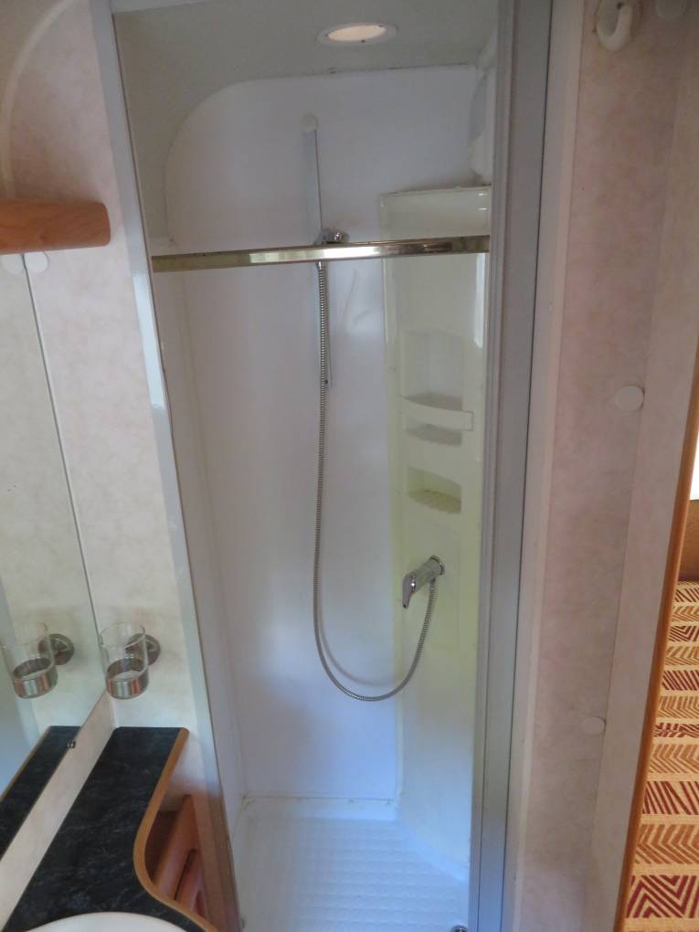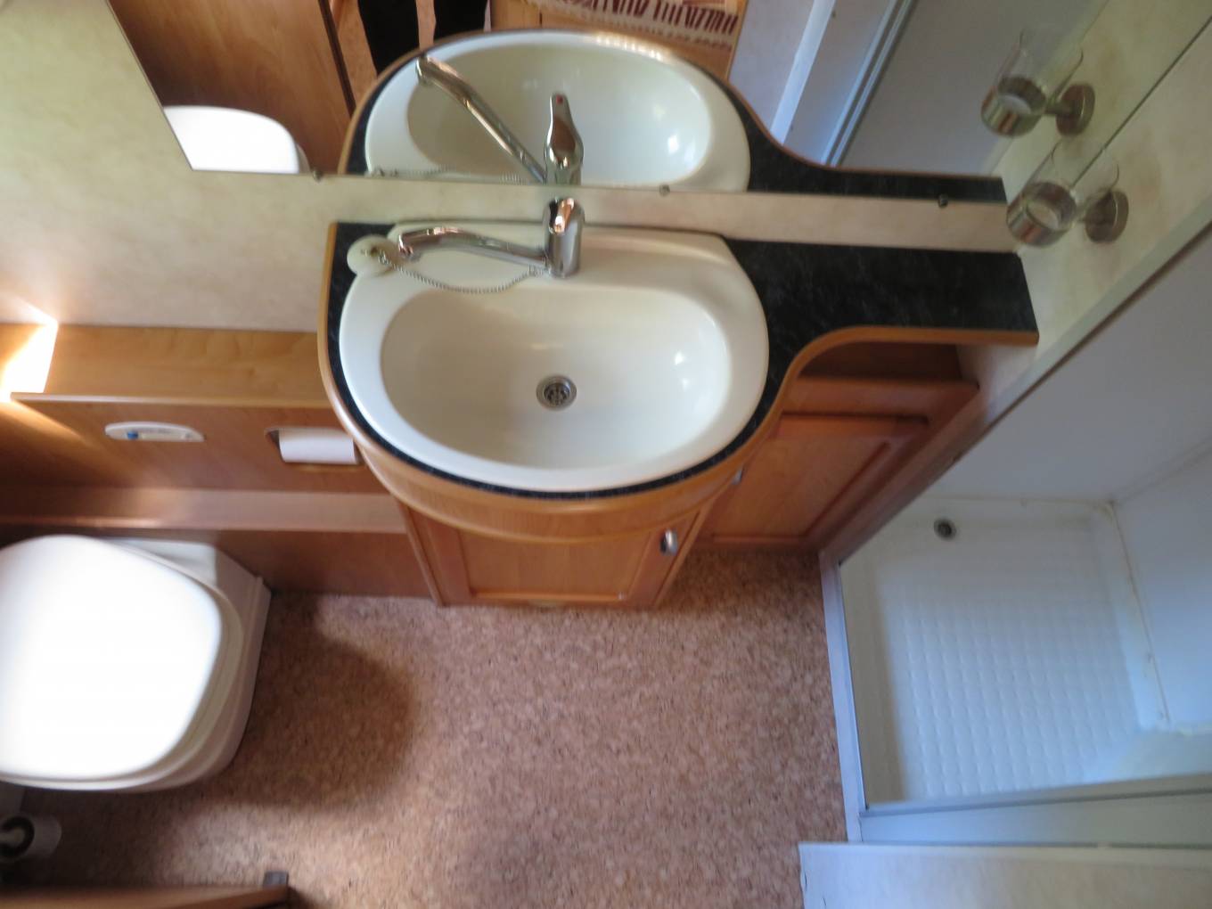 This van has been well looked after for many years and is a credit to its current owner. There are a few age related marks to the exterior as you would expect, however the inside of the van is in fantastic condition. The lounge is spacious and can easily seat 6 people when the front cabin seats have been turned. There are storage cupboards to high level on both sides of the van and above the cabin area. In the centre of the van is the well equipped kitchen area with a double sink, 3 burner gas hob with extractor fan above, combination oven/grill and an under counter fridge with small freezer compartment. Opposite this is a large double and single wardrobe with built in shelving. Next to this is the large, well lit dresser with plenty of storage and a large central mirror. Opposite is the double bed/slide out to give maximum space, when slid in the bed folds up and becomes a bench seat. To the rear of the van is the large full width washroom with a separate shower enclosure, again there is a large mirror with lighting above, a sliding privacy door, window and towel radiator.