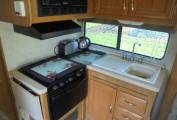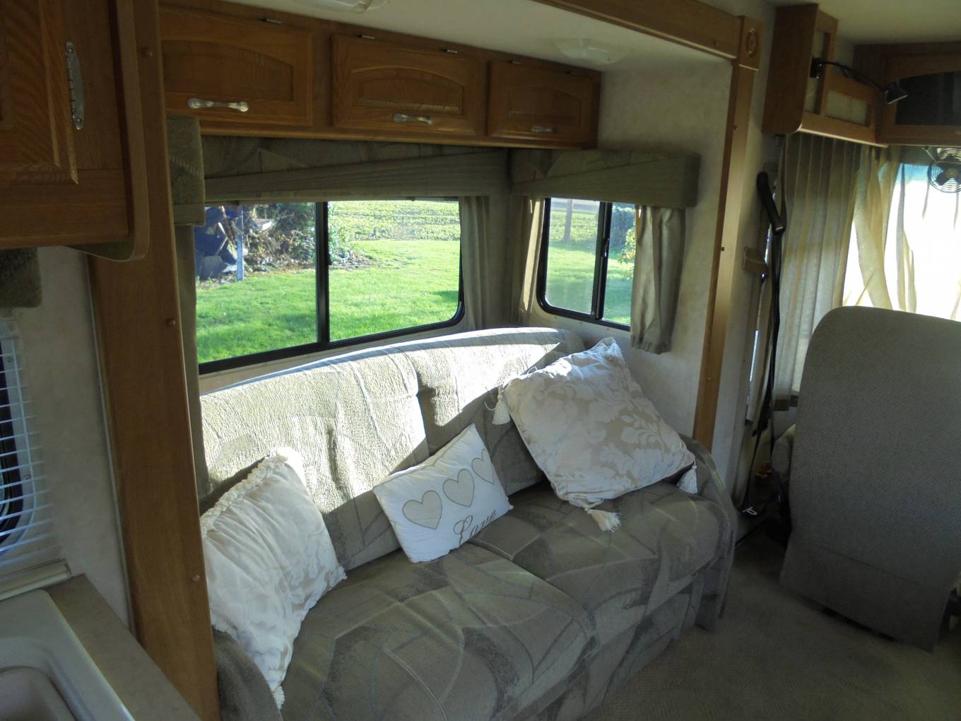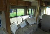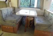 side dinette seats conceal 4 lap belts. Hydraulic corner stabilising legs are operated from within the vehicle.
