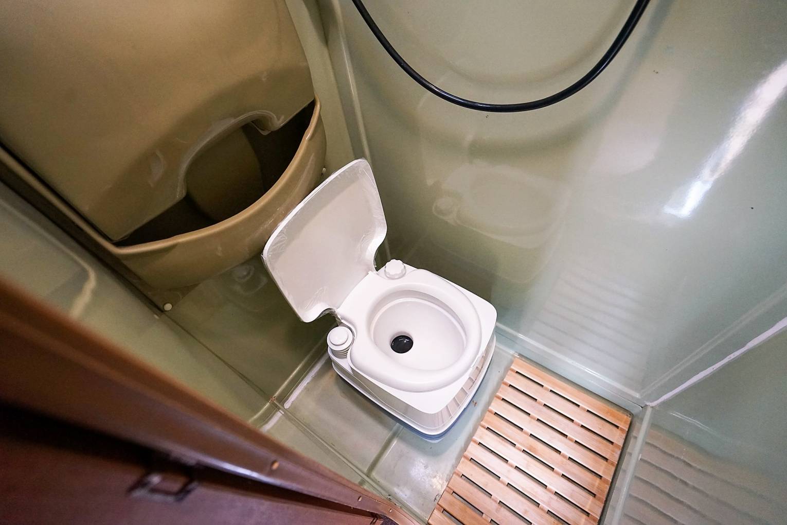 Room with fold up Wash Basin and Brand New unused Thetford Porta Potti. Brand