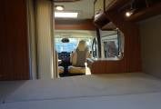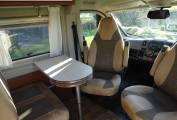 Living area to front with 2 swivel cab seats and a double forward facing seats with table. The area also transforms to a third sleeping place if required.
