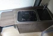 With a rear fixed double bed (6ft 4" x 4ft 7") over a generous garage, this Globescout is perfect for couples off on lengthy tours. The bed can be completely removed if necessary if the van needs to be loaded up for other reasons. Moving up the camper van, we have, in the centre a shower cubicle, which comes into play only when needed and is cleverly and neatly hidden away the rest of the time. The washroom has an electric flush toilet, basin (with pull-out shower hose), lighting, mirrors and cabinets. Opposite is the 3 way Dometic fridge with ice box and small Dometic oven. The kitchen has a 2 burner hob, sink with mixer tap, and extendable work top with deep storage drawers below.