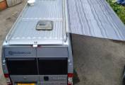The camper van has fitted blinds and fly screens throughout, (also on both sky lights) plenty of storage units, and also above cab storage. The heating and hot water is Truma on electric and gas. Other features include electric step, Gas Lo system, rear view and reversing camera, 1000 watt inverter, Sog cassette toilet, strip cabinet lighting, wind out awning, fitted cab blinds, thermal screen cover and a spare tyre. The camper van measures slightly under 6 metres in length.
