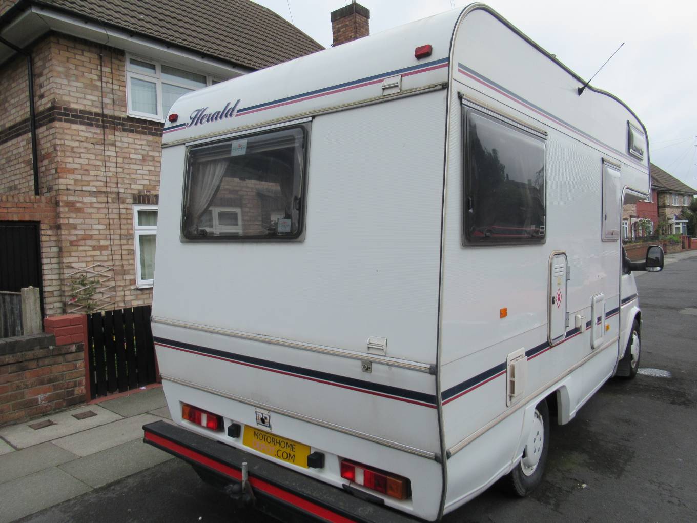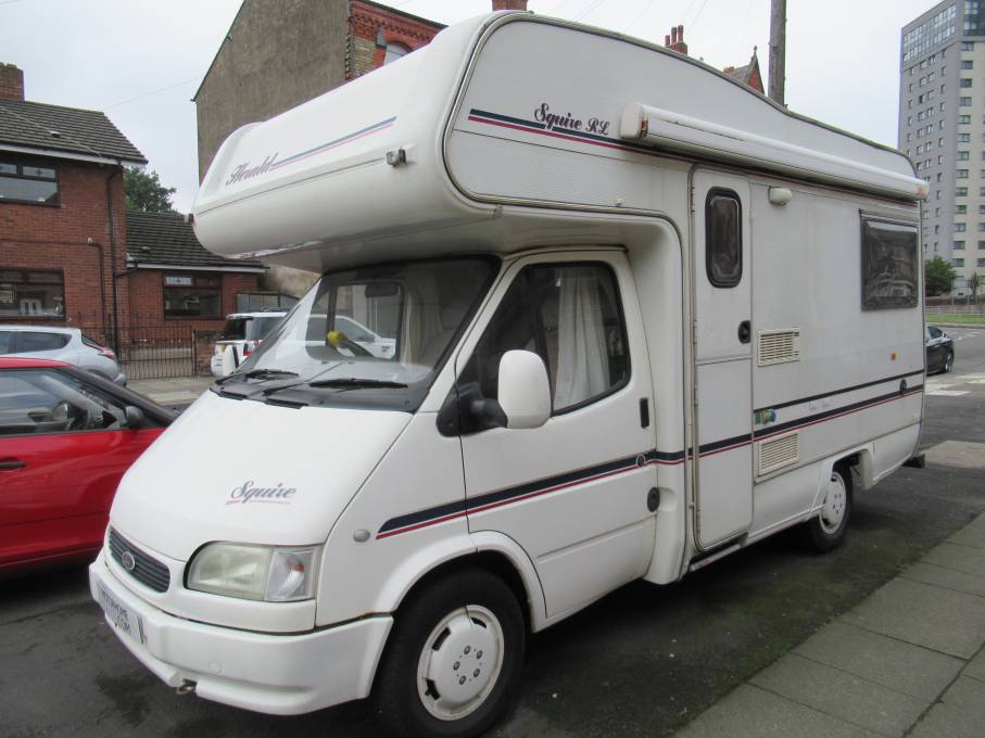 Located in Liverpool, we have on offer a 1999 Herald Squire RL 4 Berth Motorhome on a 2.5lt Ford Chassis. This Motorhome has lots to offer at a very affordable price and was last serviced in October 2018. The layout comes as follows: Starting at the front we have a good sized overcab bed that folds away giving ease of access to the cab. Behind the cab is the washroom that comes with a drop down hand basin a cassette toilet and shower. Opposite here we find the well equipped kitchen that comes with an oven, grill and a 3 burner gas hob, a sink unit with hot and cold running water and a 3 way fridge with freezer compartment. At the rear we have a bright and spacious Lounge with two side benches. This area can seat up to 6 adult diners in comfort and also converts quickly and easily into a large double bed. The Motorhome is heated by a gas fire and comes with ample storage.