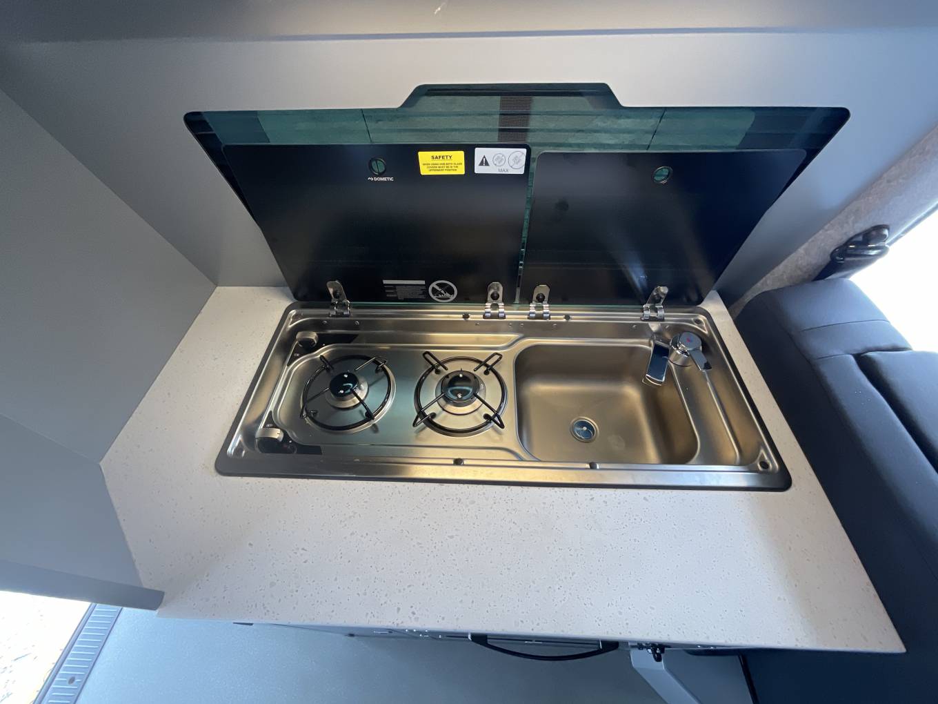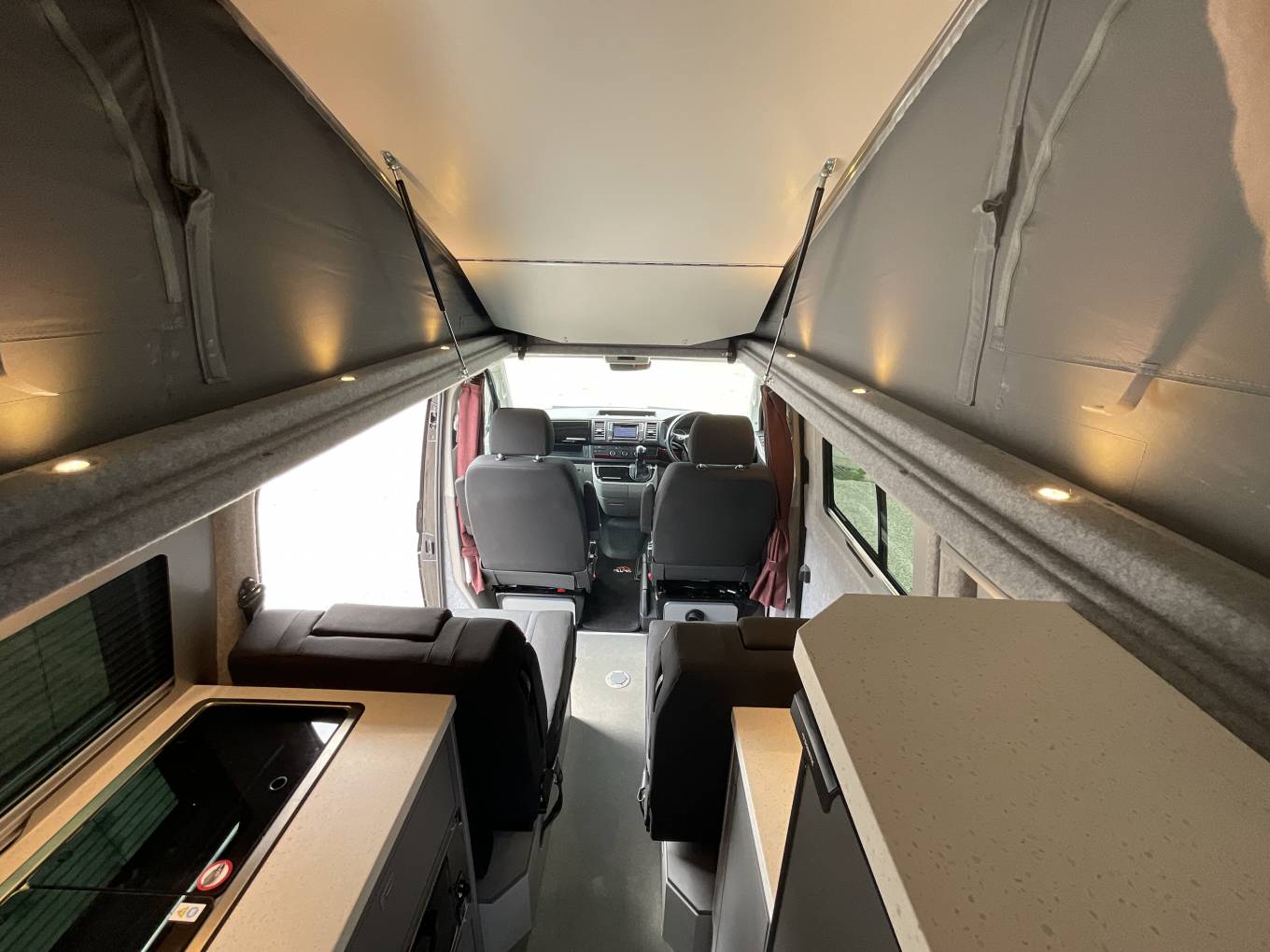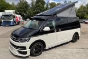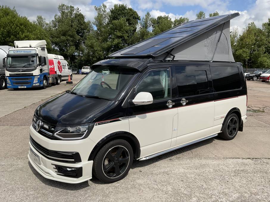 Here at Motorhome Depot Stoke on Trent, we are excited to have on offer a 2016 Hillside Cromford camper conversion. Based on the Volkswagen Transporter chassis with a 2 litre, 204 BHP engine with the desirable DSG Automatic gearbox, this eye catching 4 berth, 4 belt pop top will certainly turn heads. Hillside conversions need no introduction and this stunning conversion has everything you would need on your travels. Starting at the rear, we have the washroom that includes hand wash basin, cassette toilet and an external showering point. The kitchen is really well equipped for a camper of its size and boasts a 2 burner gas hob, grill, oven, hand wash basin and a 12v fridge. The 2 forward facing travelling seats will convert with the assistance of the drivers and passengers seats into 2 single beds. This area will also provide social seating with a portable table if required. This lovely camper also includes great storage throughout, especially for its size. Finally we have the overhead bed that is situated within the pop up roof complete with lighting. Please call our friendly sales team for further assistance