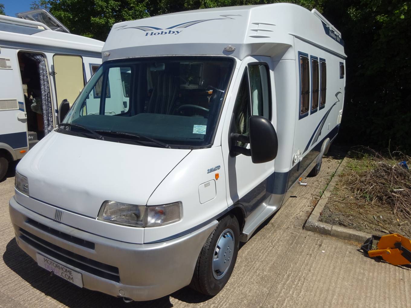 Hobby 600fse based on the alko chassis 2.8 fiat ducatto engine 5 speed manual Gearbox. The motorhome is 6.6 m long, 2.3m wide, 2.9m high, LHD left hand drive ideal for European trips and no problem in the UK Upgraded to 3700kg but no alteration to vehicle so can easily be downgraded to 3500kg. Fixed Rear French bed with bench seats which will easily convert into another doudle bed, Truma air blown heating throughout. Fully winterised with double floor well insulated. 2 leisure batteries each 115ah replaced 2 yrs ago. Starter battery replaced last year 2 solar panels on roof. Oyster satellite dish with colour TV/DVD player and USB connections etc. Reversing camera. Tow bar with electrics. 2 x 11kg refillable Gasflow bottles. 2 cycle carrier locks onto tow bar easily removed. Lots of storage. Garage under French bed accessible by lifting bed or outside door. 3 way Fridge freezer captain seats swivel to extend lounge. Omnistor wind out awning. Radio/CD player with USB connection. Recent Continental Camper tyres. Internal silver screens. External BBQ connection. 3 burner gas hob. Vanity unit with mirrors and lights. Toilet/shower. Inverter for when wild camping. Kitchen carousel for pots and pans Strong German build with top quality fittings. 2 deadlocks on habitation door and on cab doors. 82,000 miles. full MoT on sale In good condition for 16 yr old vehicle. PLEASE CALL ALAN ON 01302276988 FOR MORE INFORMATION OR TO REQUEST THE ADITIONAL PICTURE FILE. PLEASE NOTE THE MOTORHOME IS STORED IN THE NG17 POSTCODE.