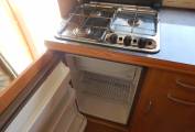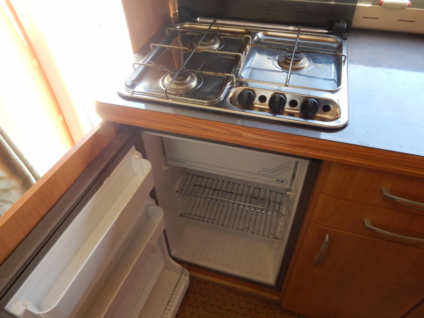 The 2.8 litre turbo diesel engine is both powerful and economical, returning a documented 32 MPG. There is cab air conditioning and a that rare feature of a transverse permanent bed to the rear. The dinette area is spacious and there is a fully featured kitchen with oven, hob and grill and a good sized fridge.