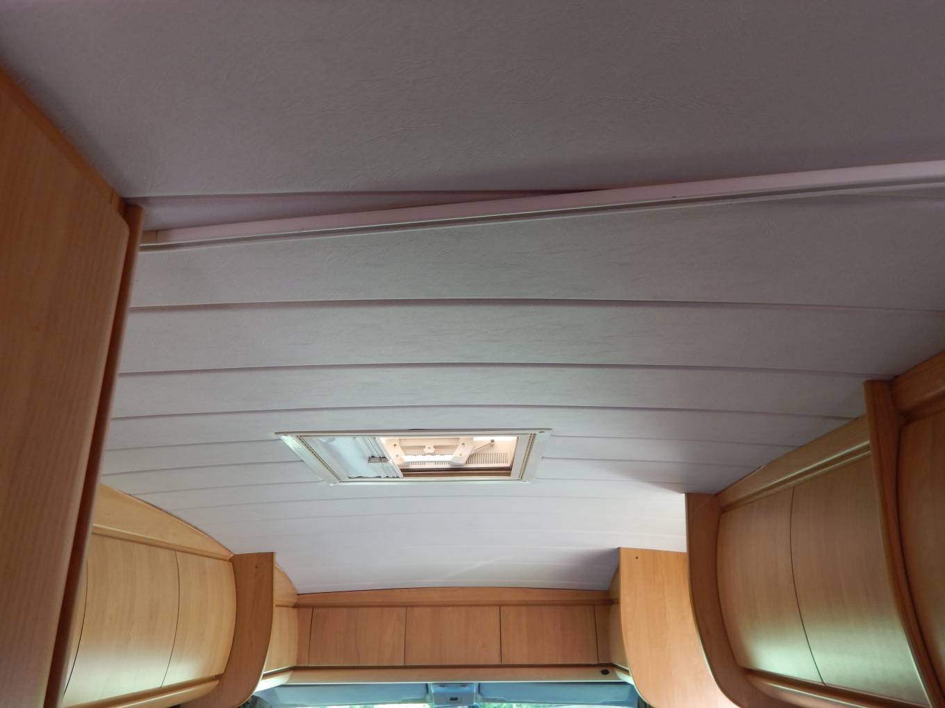 There are four travelling seat belts, a reversing camera, and a TV and aerial set up. The quality is the main feature however, with a moulded ceiling lining, and a roof that is strong enough to walk on making it a little different from other coach built motorhomes. All of the windows, catches, blinds and screens work as they should. There has been a recent washroom sky light fitted as well.