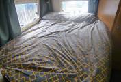 The ceiling is in a padded finish throughout, and there is masses of storage with perimeter, under work surface and below bed options.