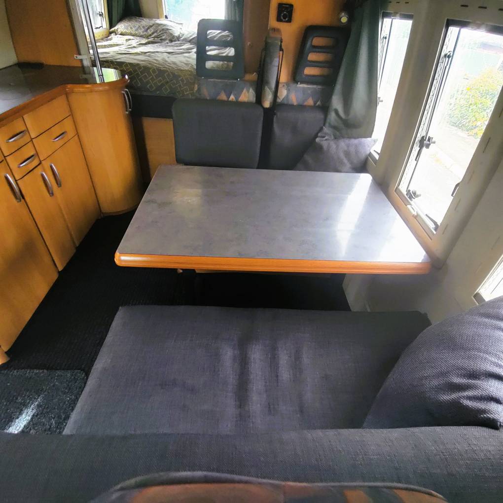 The Hobby build quality is evident throughout with solid warm-toned cabinetry and the habitation upholstery has been updated from the original.