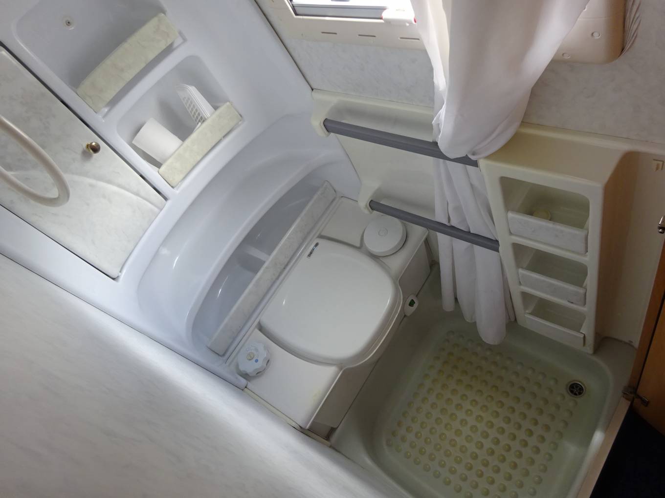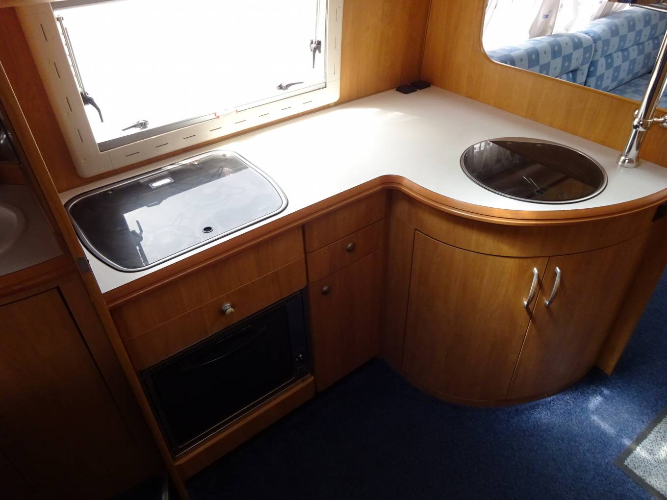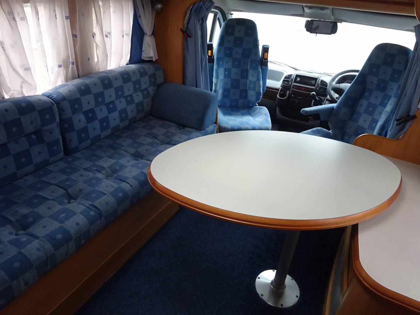 The lounge area is spacious and has two swivel captains seats. Although there are only two travel seats, the sofa pulls out for a second double bed for guests.