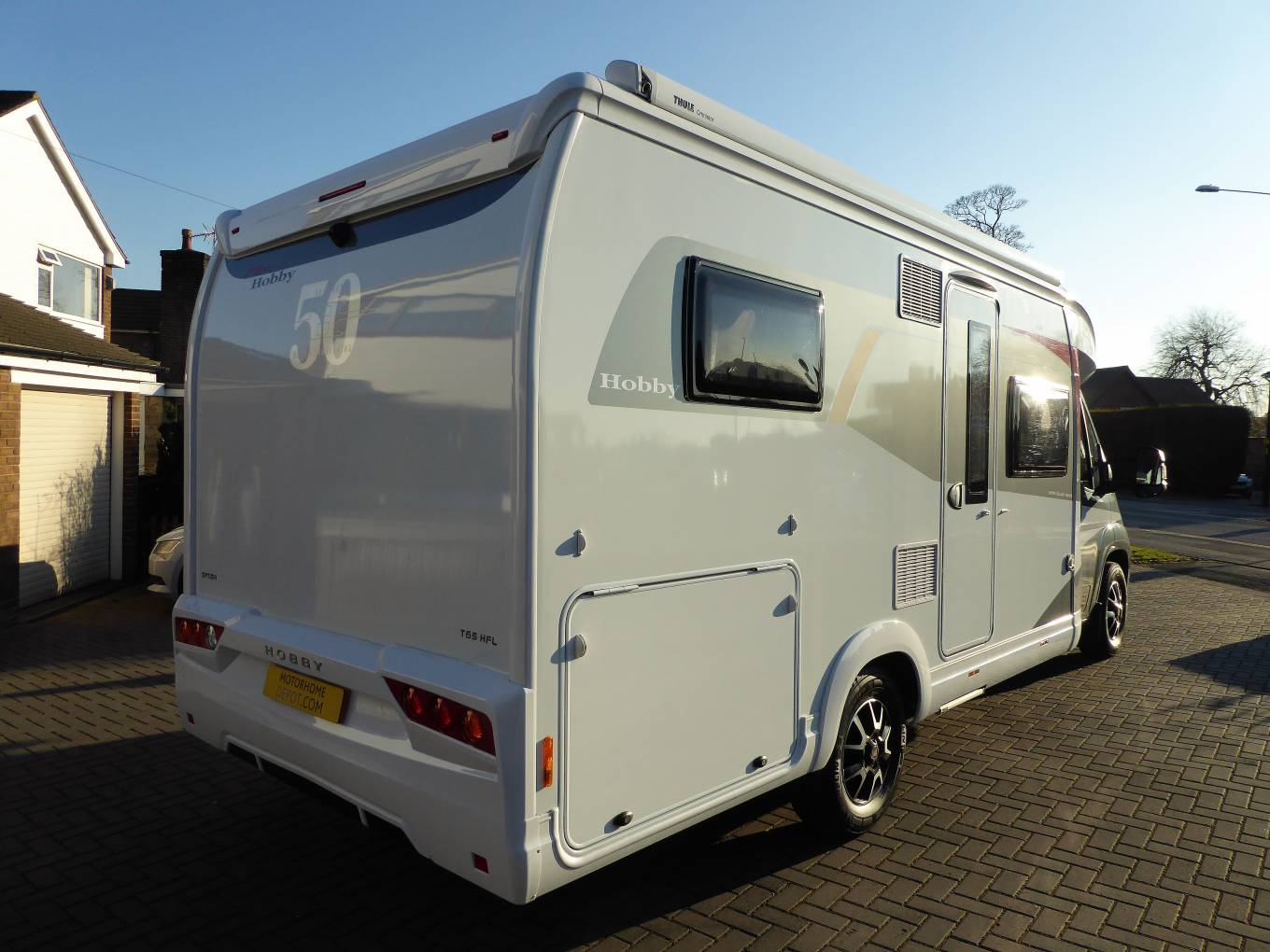 Call with any questions on 01423 609985. PRICE REDUCED. This is a well presented Hobby Optima T65 HFL 4 berth luxury coachbuilt motorhome that is in excellent condition. With only 1 former owner, it was first registered in July 2016 and has 11177 miles on the clock. Stand out features include, drop down bed over the front lounge area, good sized storage under the rear bed, overall length less than 7 metres and multimedia centre which includes sat nav, reversing camera. Internally at the rear is the washroom with good sized shower area with full screen enclosure. The rear bed next to it has good storage below and above in the cupboards. The kitchen area enjoys a large fridge with freezer, 3 gas burner stove with oven and grill below and then the sink integrated into the worktop space. Above the habitation entry door which has a flyscreen and accessed via an electric step is the control panel, close to the the Truma heating system. In the front lounge there are 2 sofas, and L shape that has 2 forward facing seatbelts and separately on the offside a smaller sofa with storage above. Up front in the cab features include 2 captains seats that swivel, 6 speed manual transmission, cruise control, Remis blinds, multimedia centre and plenty of storage and headroom that is a feature throughout. The revenue weight on V5 is 4250kg with plated weight 3650kg; this lower weight has been confirmed by Hobby GB & I Ltd, and DVLA informed of the required change, making this low profile motorhome the perfect touring vehicle. This should be viewed at the earliest opportunity in Harrogate, North Yorkshire. Part exchanges are welcomed on this vehicle, for further information please call us on 01423 609985 quoting reference number 88949.