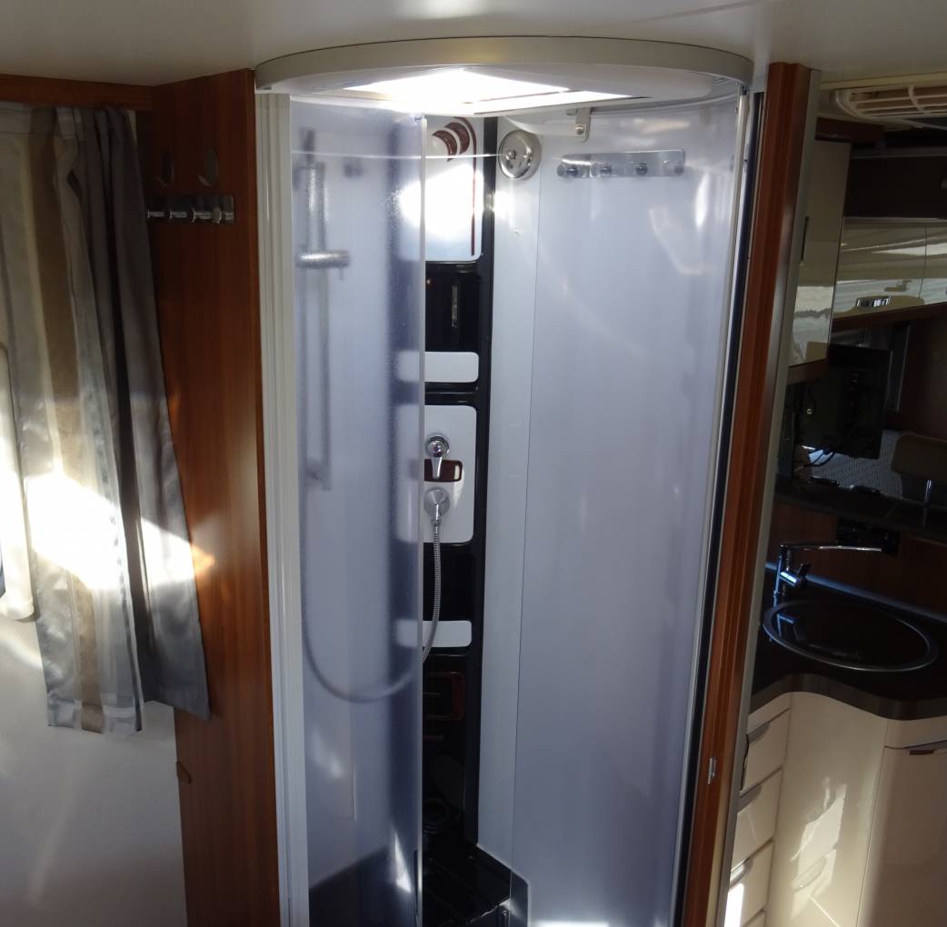 shower on the nearside. Hot water/ heating come from TRUMA heating Combi 6. At the