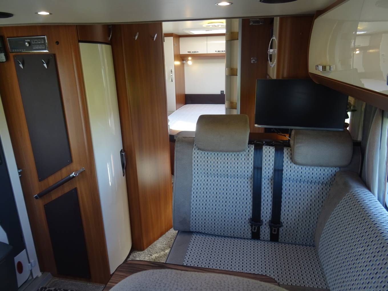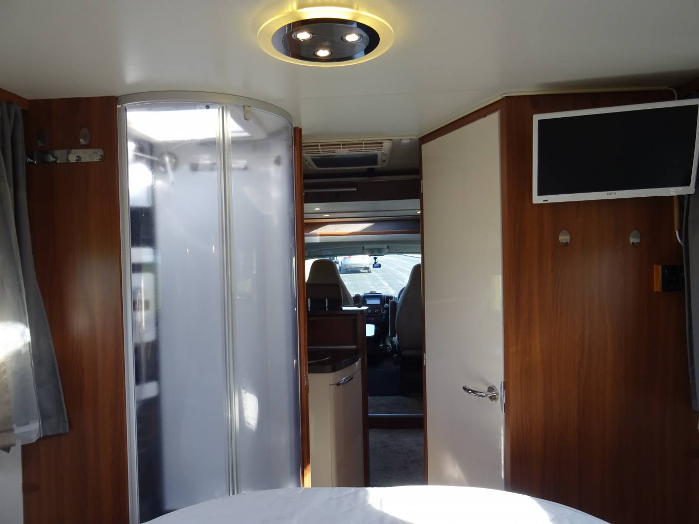and bed area can be separated by a solid door from the rest of the motorhome. The