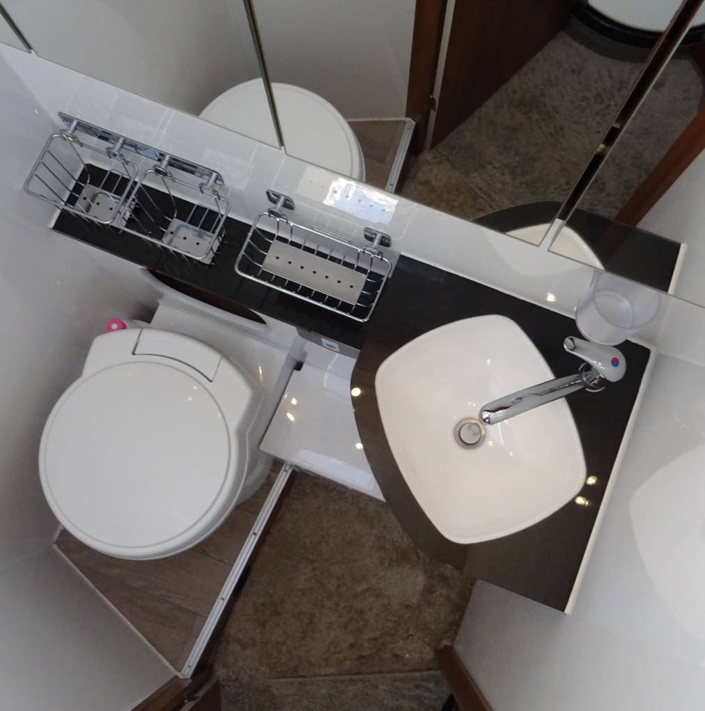 toilet and handbasin are on the drivers side of the vehicle with the separate