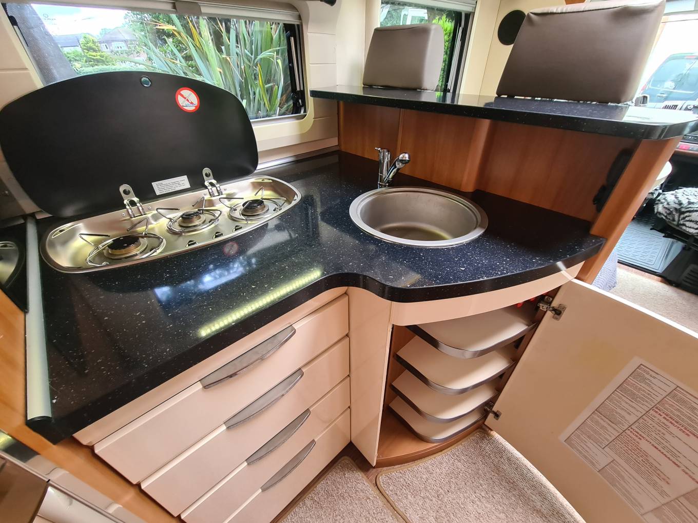 The Lounge area is flooded with light courtesy of the huge skylight above. This area can easily seat up to 5 adult diners when utilising the Swivelling Captains Seats.