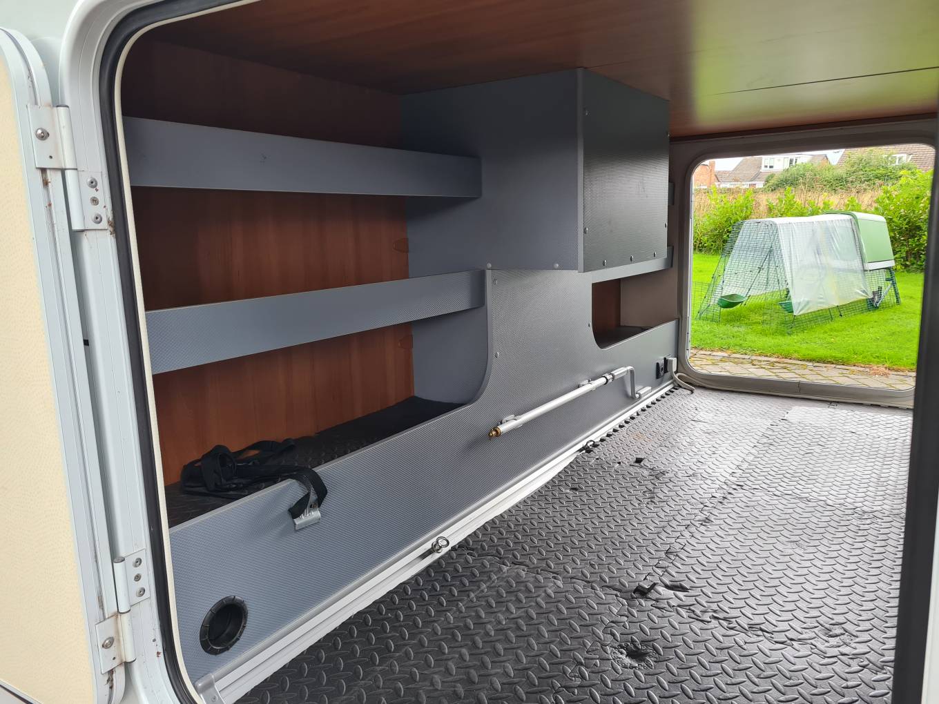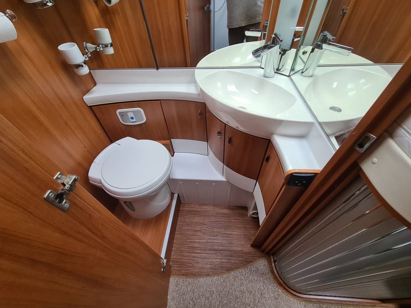 At the rear is the sleeping accommodation where you have two large Single Beds, there are large, easily accessible cupboard / wardrobe spaces here too.
