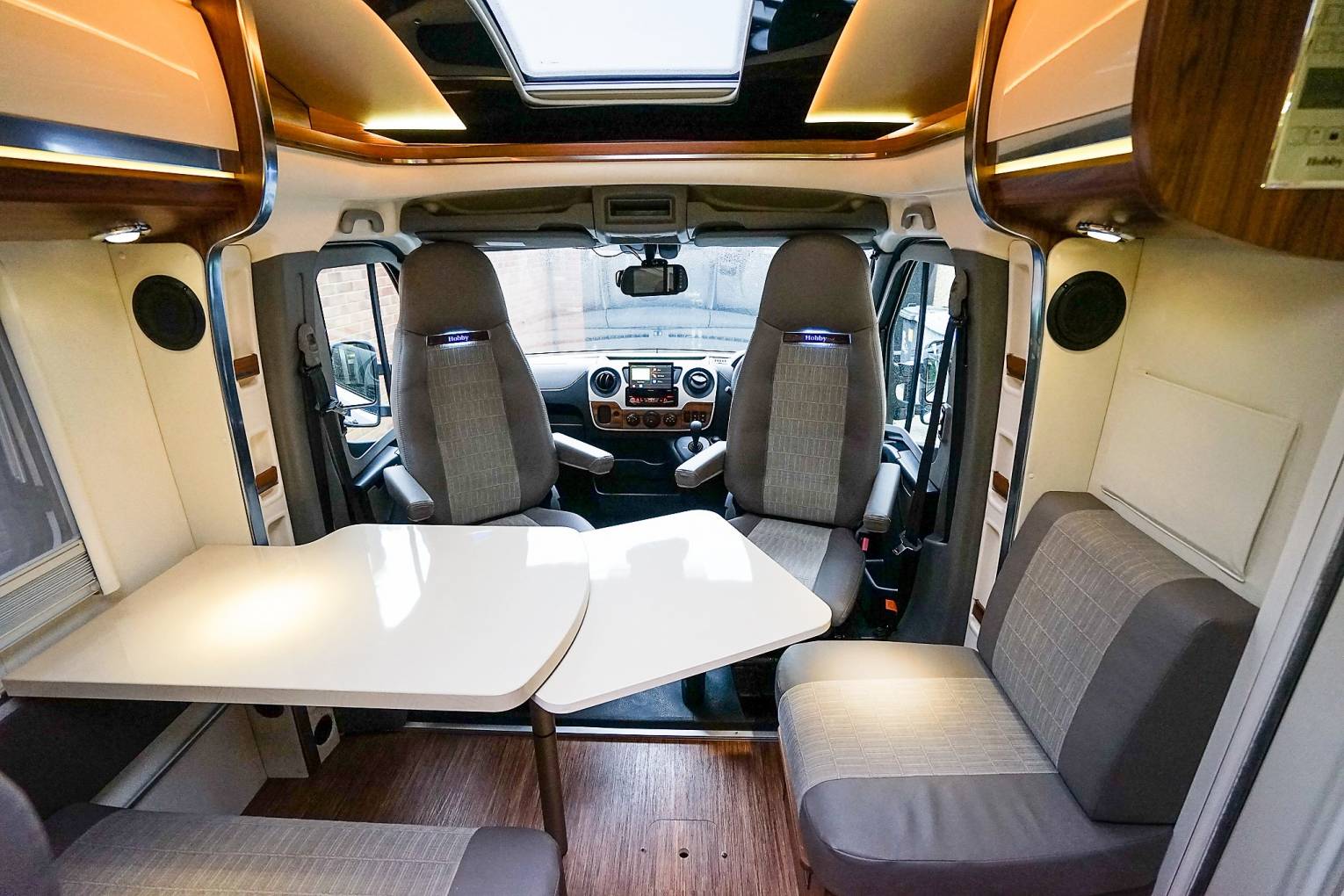 2014 Hobby Premium Van 60GF. Immaculate Luxury 2 Berth Motorhome with Rear Fixed bed and Large Garage. Automatic. Low mileage. 4 Travelling seat belts. Superb, Stylish & Comfortable German Motorhome Built on a Renault chassis, 2.3 Litre Diesel engine 150 BHP, automatic transmission. Fitted with awning, Solar Panel, Twin Leisure batteries, Inverter, Pioneer SAT NAV multimedia system with Bluetooth, BBQ point, External Shower, Twin Reversing Camera, Microwave and TV