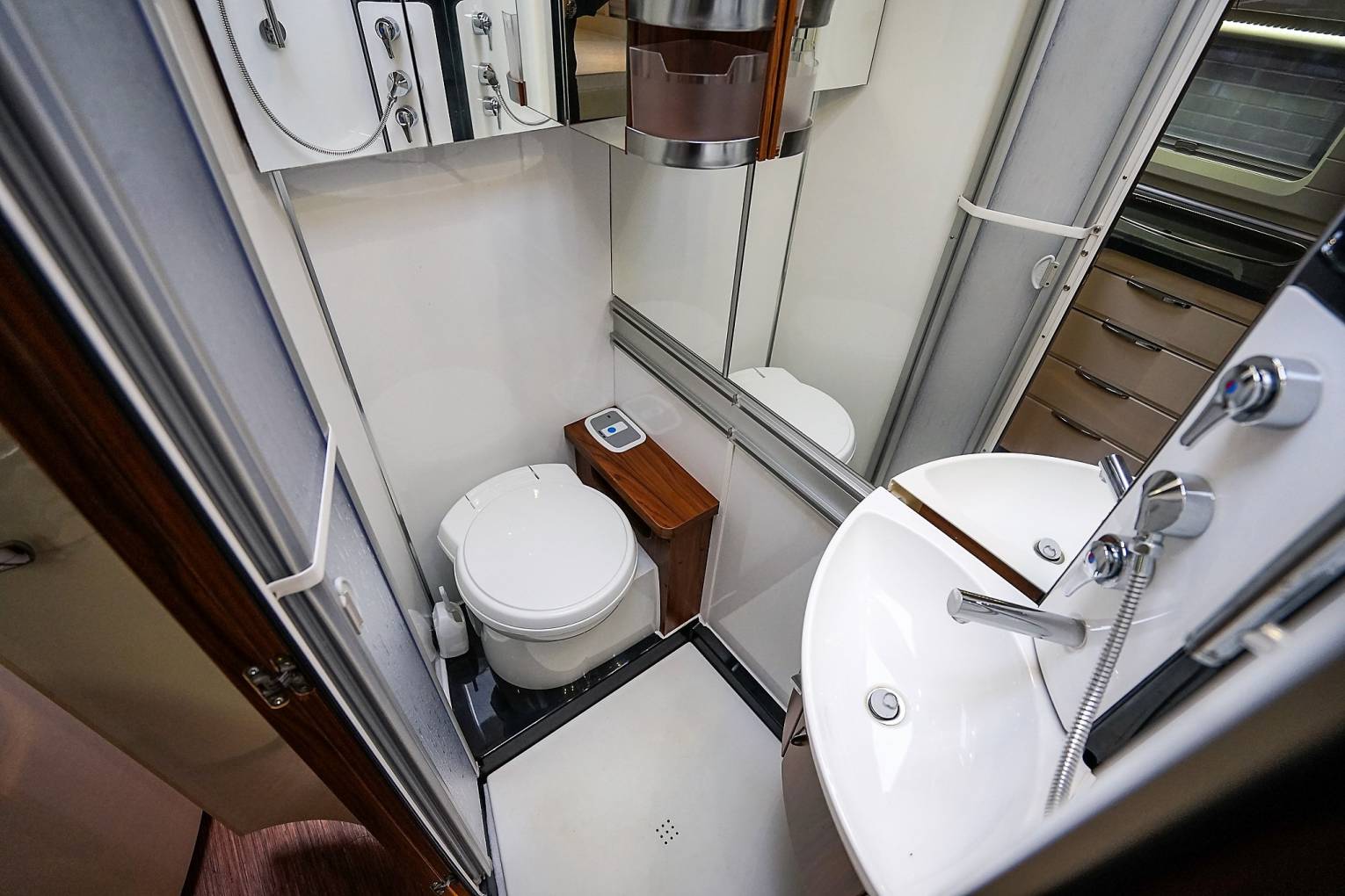 to provide a large shower cubicle. Thetford Electric Flush cassette toilet.