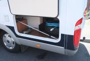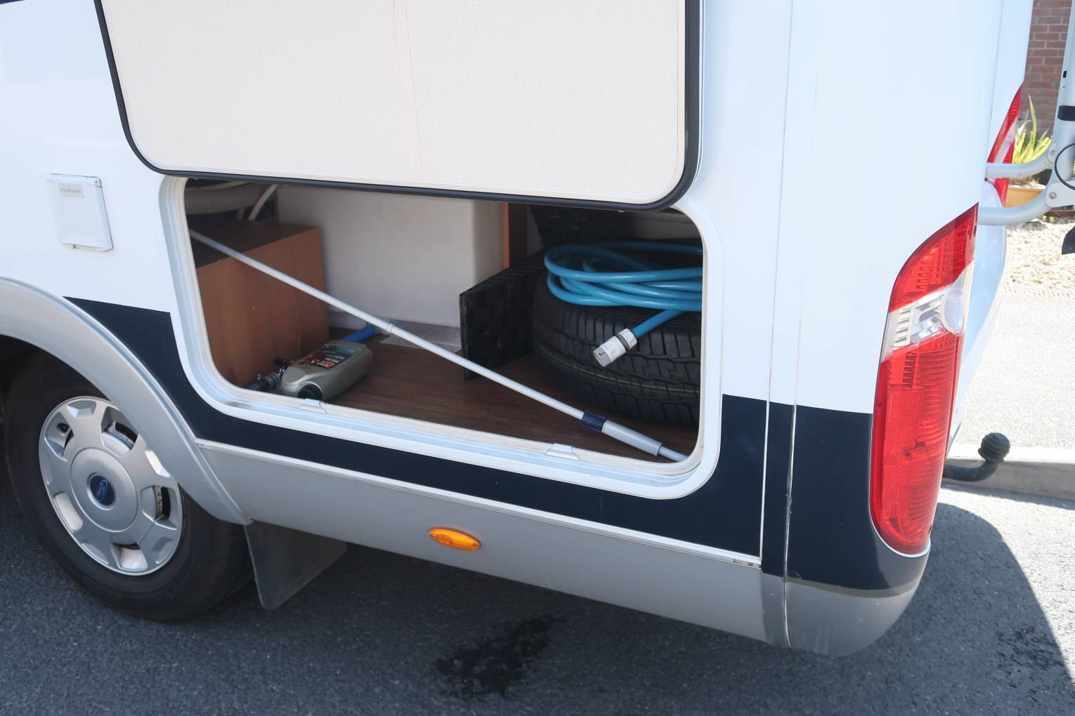 Externally the motorhome is fitted with a solar panel, a tow bar, a bike rack for 2 cycles, a wind out awning, a reversing camera, reversing sensors and an electric step. The stylish graphics give it a really nice finish. The motorhome is coming with a free Kampa air awning and a free motohome cover and at the advertised price it represents fantastic value.