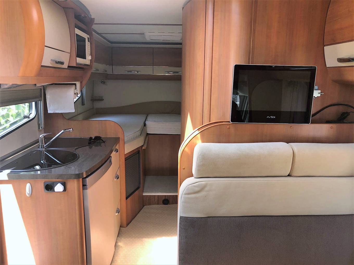 Call with any questions 01423 609985. This is a limited edition, left hand drive, Hobby Siesta T 650 Ti, 4 berth coachbuilt motorhome, first registered in July 2012, it has travelled just 33,319 miles, has MOT until July 2022. It is in excellent condition inside and out and it is easy to see it has been very well looked after by its current and previous keepers. It is probably more ideal for 2 people to tour and use the extra space to relax. It is a great layout inside with the fixed single beds bed at the rear, that can also be made into a spacious double. There is good storage above and below in the well sized garage, which can be accessed from both sides of the van, which is a real benefit for travel in the UK as well as Europe. The washroom is a generous size and has toilet, sink and shower, with circular enclosure with plenty of room. The kitchen has a 3-gas burner hob, microwave plus a fridge with separate freezer below the worktop. The upholstery is in good condition esp in the dinette area with 2 forward facing seats that have full seatbelts and opposite a small sofa and this area can be made up into another double bed. There is enough seating here to comfortably seat 6 people and also a TV here. Upfront, both seats swivel, there is 6 speed manual gearbox, air conditioning, cruise control and rear-view camera. This limited edition motorhome is 7.00 metres long, built on a Ford Transit chassis, with twin wheels on the rear axle for greater stability. The large windows and rooflights allow plenty of natural light to come in and complement the light coloured furnishings. There are extra LED strip lights above the bed and in the rear garage. It benefits from 1 Gaslow cylinder, heating, built in wind out canopy, sunroof, Hobby carpets and bike rack. A ground sheet, 2 chairs, table, cable hook up, gas bbq and waste master are also included in the sale of this motorhome which is situated near to York. Part Exchanges welcomed on this vehicle, for further information and photos please call us on 01423 609985 quoting reference 145868.