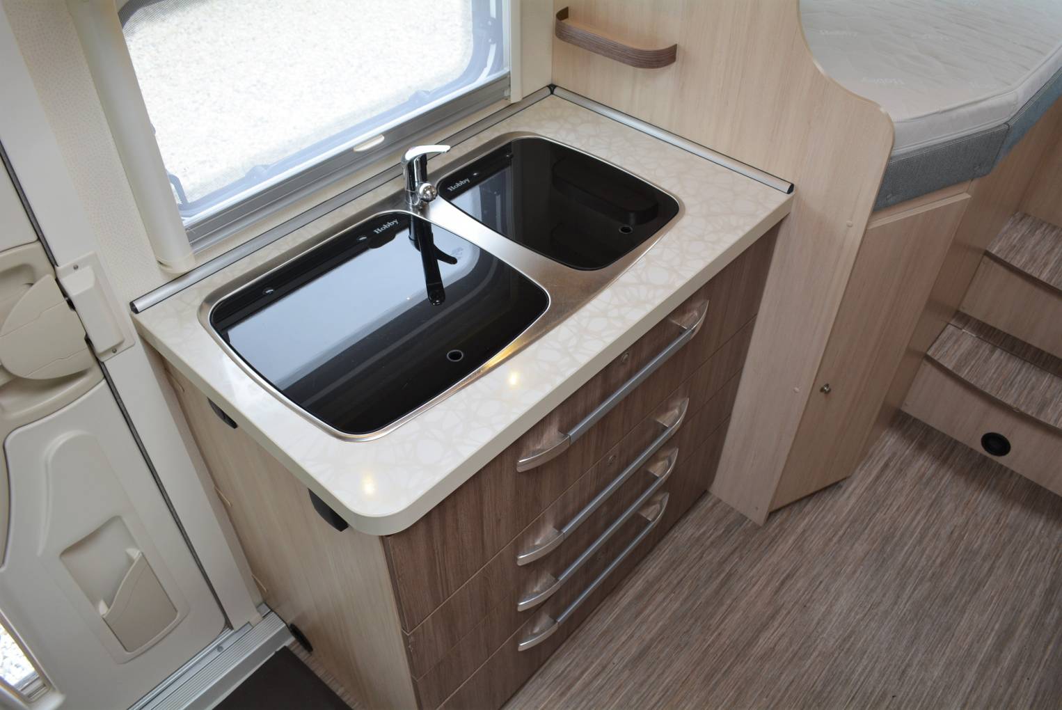 **viewing by appointment** 2014 Hobby Siesta T70 HGE 4 berth Motorhome for sale. The Hobby Siesta provides both space and comfort with a very practical layout consisting of a large double door rear hold area, twin single beds, drop down double bed, lounge area with swivel chairs and 2 additional travel seats, Led lighting, washroom with shower, basin and toilet and a well equipped kitchen area with fridge freezer, oven, sink, hob and hot water. Other features include awning, bike rack, air conditioning, cruise control, cab shades, aerial and electric step. Based on a Fiat Ducato 4250kg chassis with a 2300cc engine and manual transmission. Please note C1 license required to drive this Motorhome. Sale includes full habitation inspection, gas certificate, mechanical service and 1 years warranty. Please call for further details. Finance and part exchange available.
