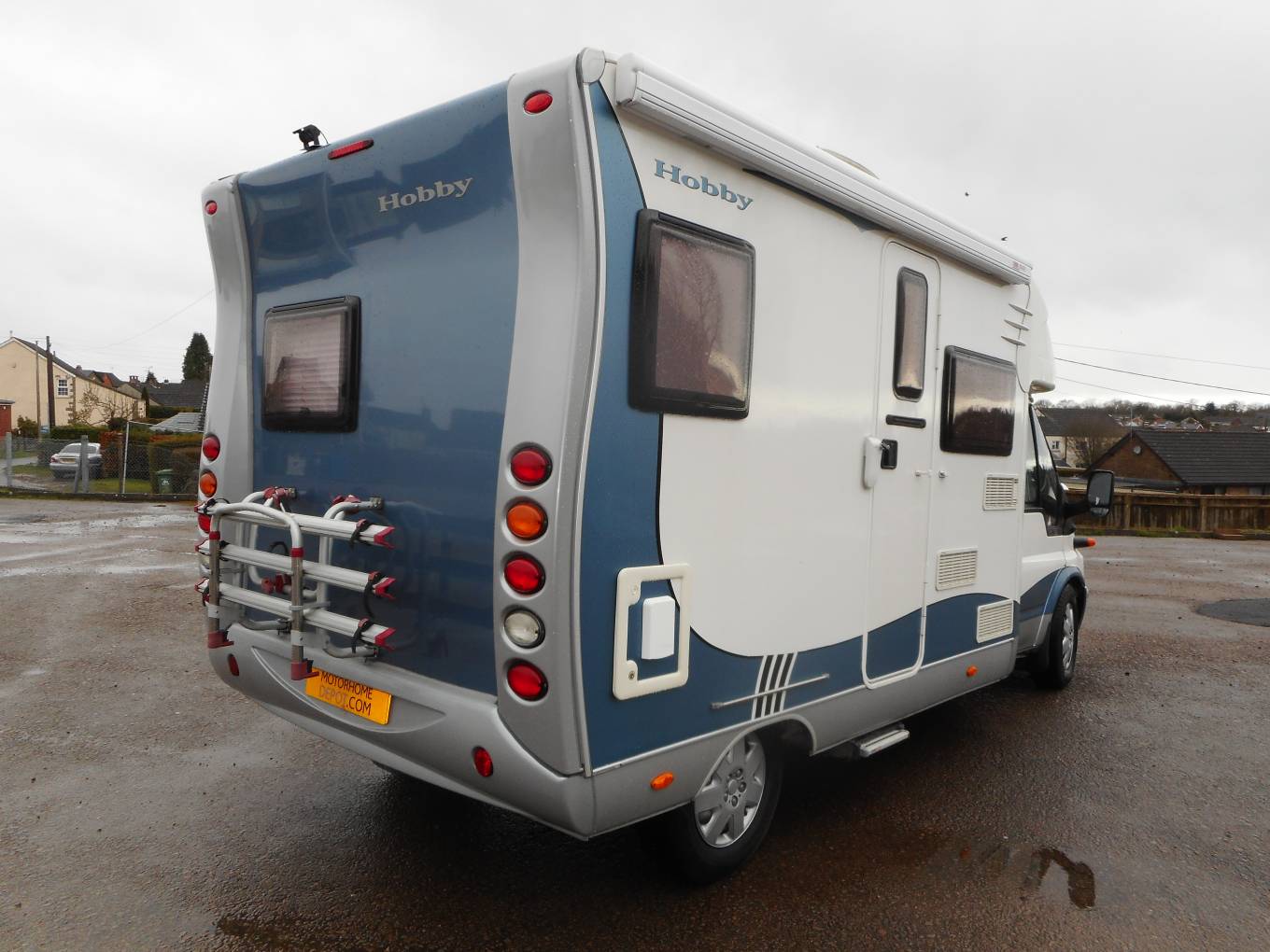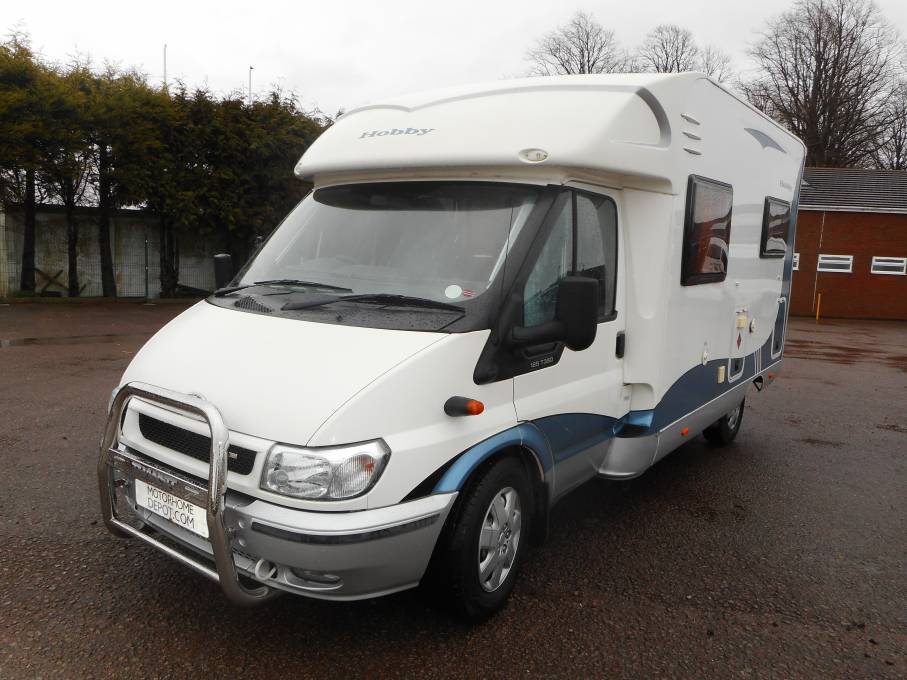 Located just outside Coleford in the Forest of Dean, Gloucestershire is this lovely example of the German built Hobby T555 motorhome. The Hobby marque has gained an enviable reputation for producing quality motorhomes and caravans for fifty years. The T555 illustrates that quality, packing comfort and refinement for a couple into its 5.84m length. There is a fixed double bed at the rear offering no hassle comfort and plenty of storage in eye-level lockers and access to the locker underneath. Adjacent is the bright, light and airy washroom which is very usable and offers a shower, sink and electric flush lavatory. A full hanging closet leads to the forward kitchen and dinette. The stylish kitchen has a three-burner gas hob, a built in Smev oven with grill, and a triple supply fridge with freezer box. The dinette opposite has two forward facing seats, both with travelling 3-point seat belts. The dining table will easily drop forming another double berth suitable for one or two small children. Both captains chairs swivel creating a very social feel in an area well-lit by natural light. There is ample storage inside the home with eye-level lockers and drawers. Heating and hot water is provided by the efficient Truma C6002EH combi boiler. For the driver is cab aircon, a reversing camera, power steering and a Ford entertainment system. Based on a Ford Transit 2L turbo diesel with a five speed gearbox that pulls the 3500kg MAM along with ease. The engine bay is spotless. There is a comprehensive service history and the low-profile outline proves to be economic to run. The MoT expires in November 2020. This Hobby T555 comes with a triple bike rack, Sigma alarm system, a 100W solar panel, gas bottle, removable carpets, and a SOG lavatory cassette system dispensing with the need for smelly chemicals. This is a meticulously maintained motorhome that is ready for new adventures. Please call Tonia or Martin for the full photo album and video.