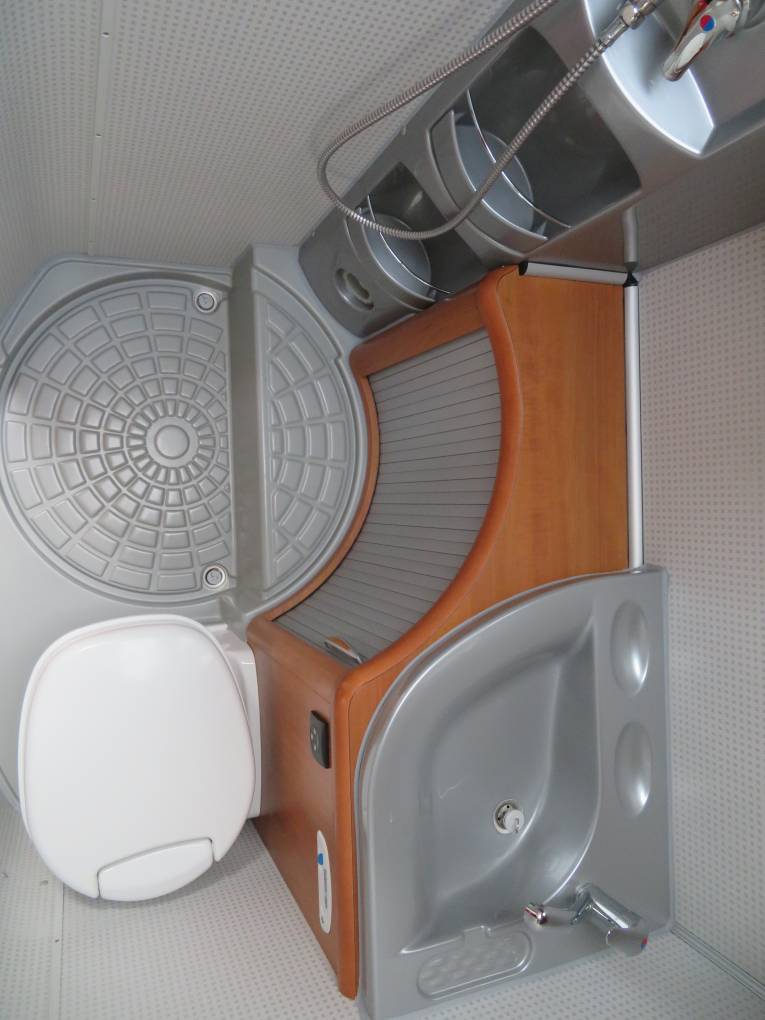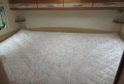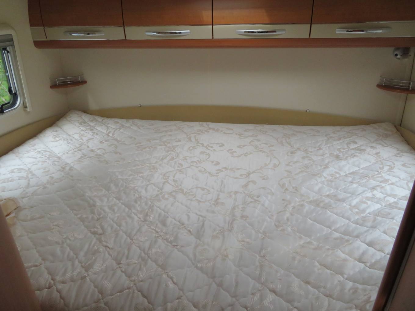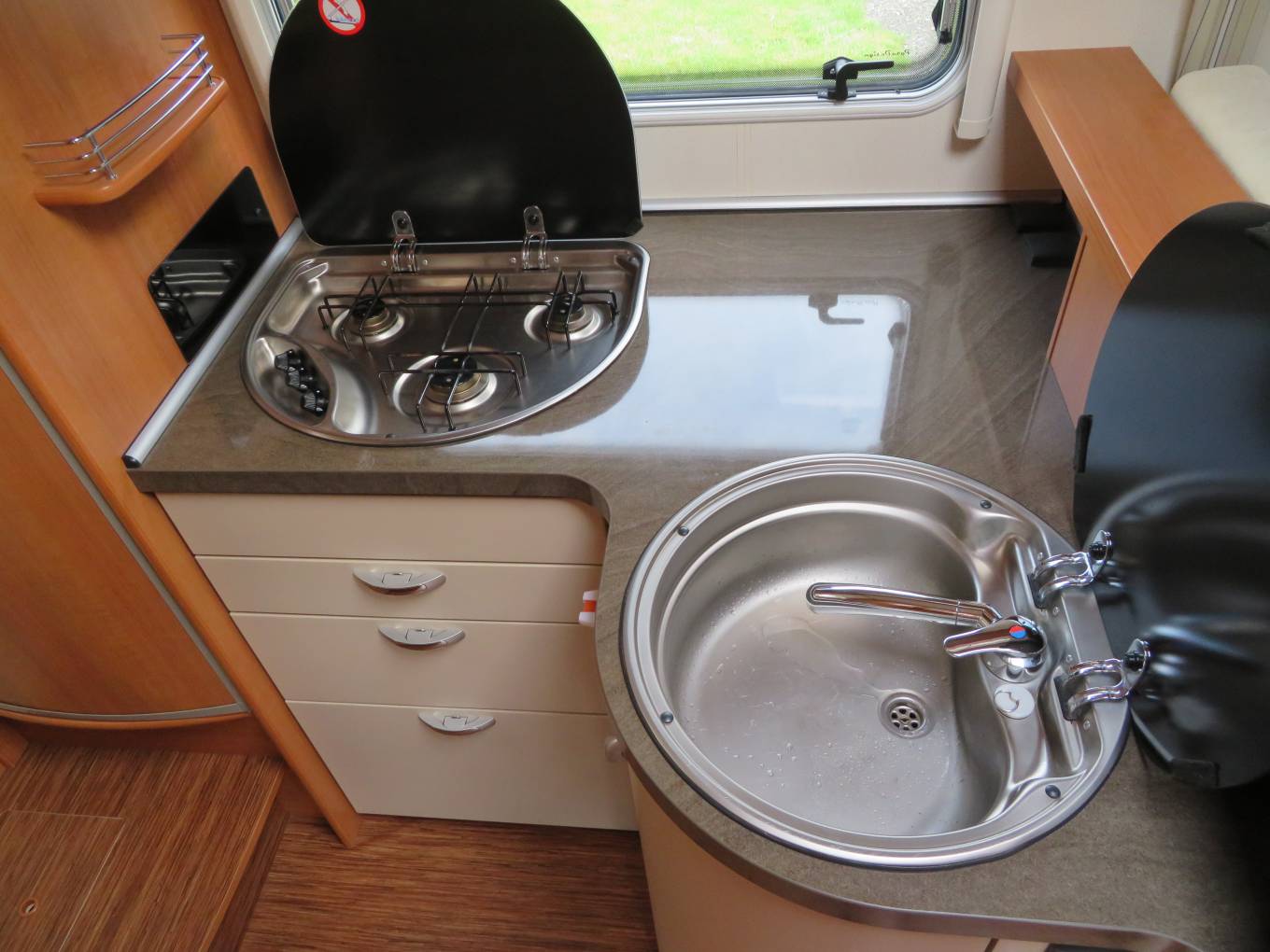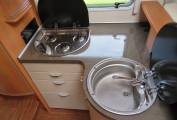 Inside the living area has all the quality and luxury you would expect from a Hobby, The living area is spacious with an extending swivel table which can comfortably seat up to 7 people. Above this is the electric drop down double bed which is accessed from a ladder, there are safety nets both sides to prevent you from falling out. The L shaped kitchen area is well equipped with a large fridge and separate freezer, a combined oven/grill, a 3 ring gas hob, a sunken sink and plenty of storage cupboards above and below. Opposite the kitchen is the large washroom which includes a cassette toilet, wash hand basin with storage below, a shower with circular sliding screens, two vanity cupboards with three mirrors in total and a circular dome roof-light. To the rear of the van is the large transverse double bed, this is accessed via two steps, there are two large windows and a roof-light giving a light and airy feel through the day time. Beneath the bed is a wardrobe with storage shelves to the side, continuing the theme throughout the van of plenty of storage.