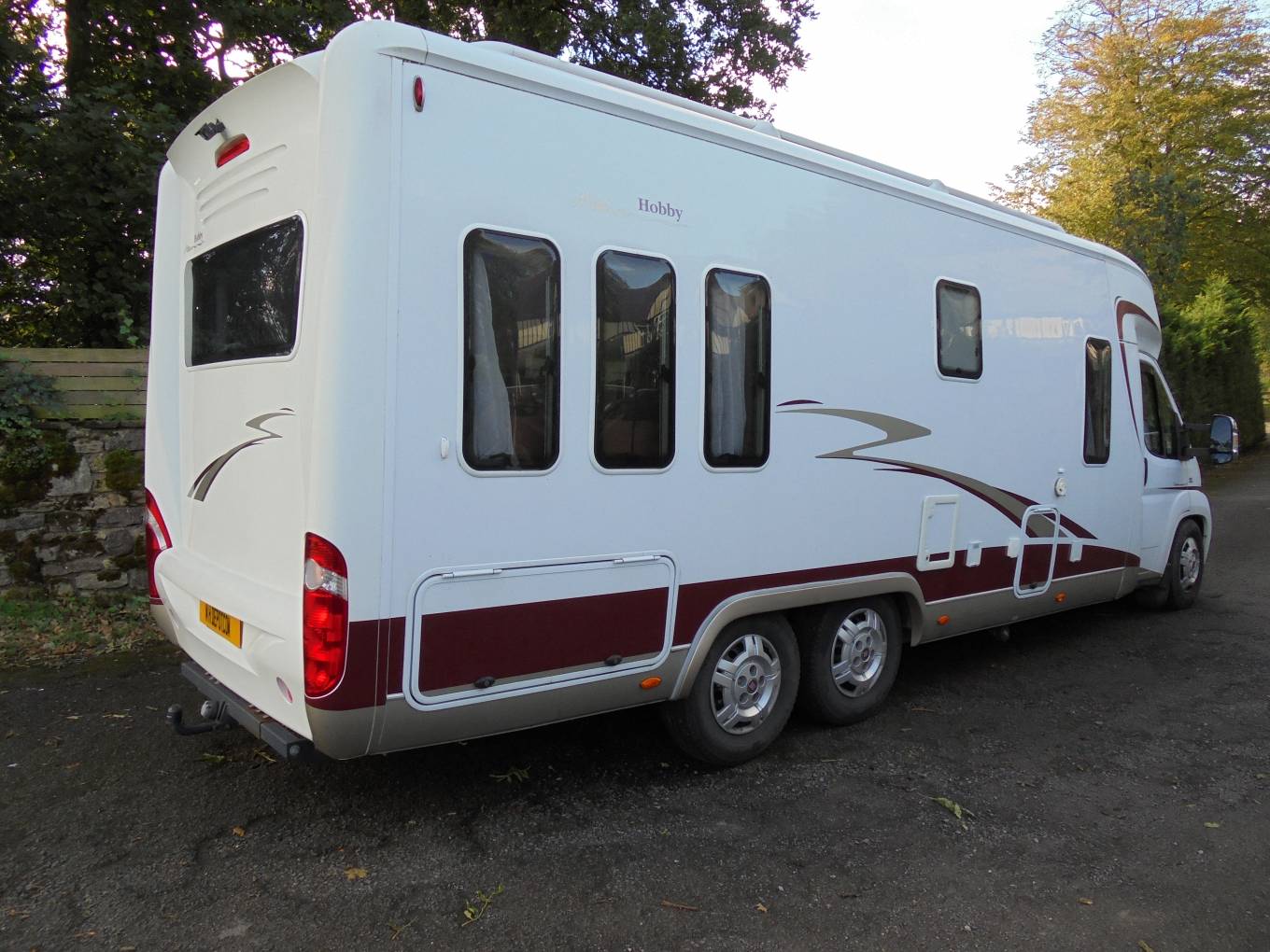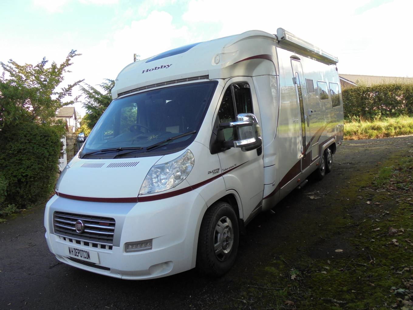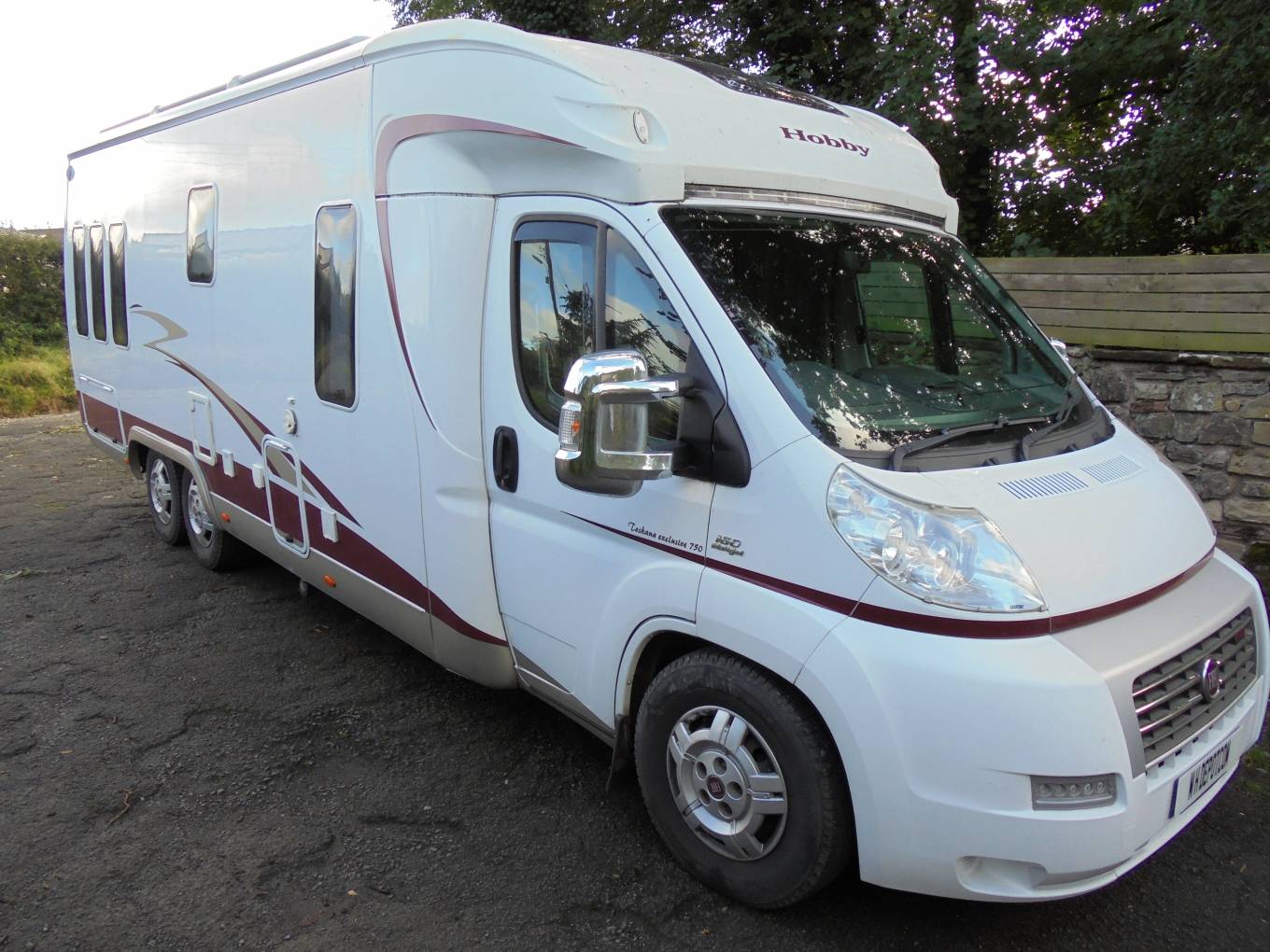 Hobby Toskana Exclusive 750, this is a beautiful luxury 4 berth motorhome in excellent condition. It has one previous owner with just 14,397 miles on the clock and has full vehicle and habitation service history. This is a quality German built motorhome and comes with some very nice luxury features, at the rear is a large U shaped lounge over which is an electric drop down double bed and at the front the seating area makes into another double bed. In the centre there is a well equipped kitchen and a good sized bathroom with shower compartment and all the seating is finished in quality leather. It comes with cab and habitation air con, 4 seat belts, alarm, cruise control, rear camera, auto seek satellite system with 2 x TV's and the head unit in the dash has DAB radio, bluetooth, DVD and sat nav. Outside there is a solar panel, tow bar, shower and BBQ point. The motorhome has the Fiat 3.0 engine and is on tag axel chassis which gives great stability with gross weight of 4,500kg. Call Ed for more photos and information or to arrange a viewing.