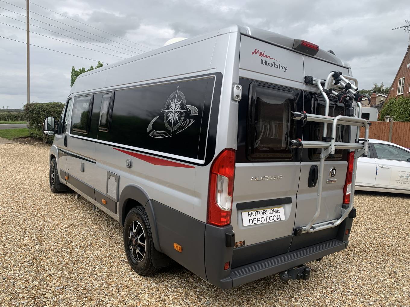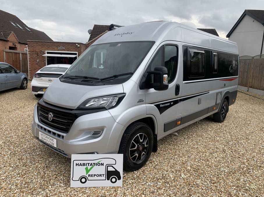 A stunning looking high top panel van finished in silver with gloss black mid panels and diamond cut alloy wheels, built by Hobby to a very high standard with some very practical and clever design features.
