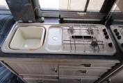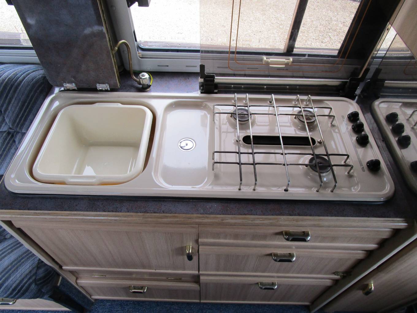 camper and consists of a three- ring gas hob, grill, 3-way fridge with small
