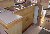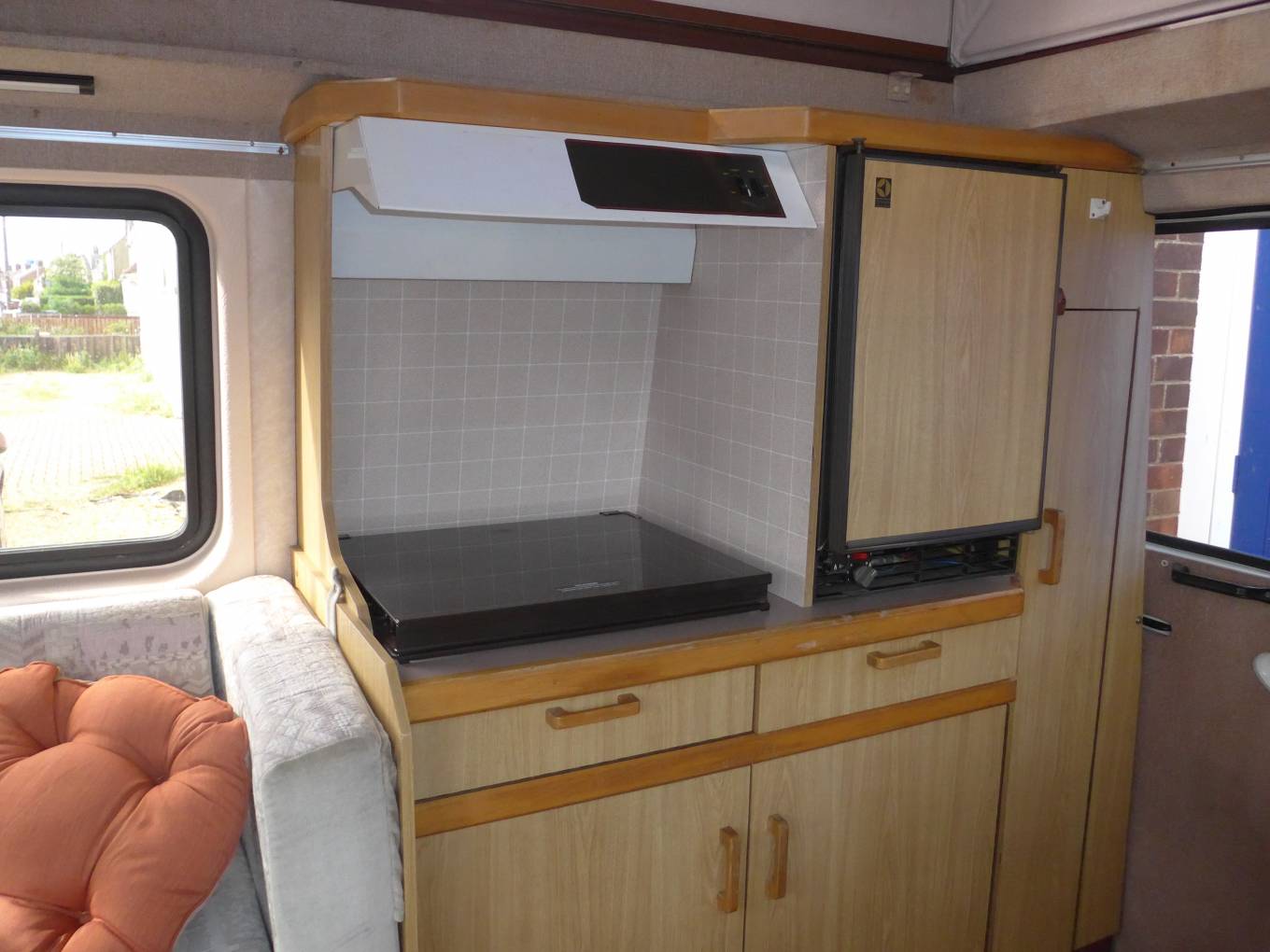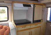 The Romance is a well-designed and compact professional van conversion. It consists of an L shaped Kitchen with sink, mixer tap and separate drainer. 2 way Fridge, Gas and 12V, 3 burner gas hob with grill. Extractor fan with LED light.