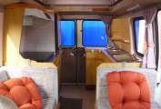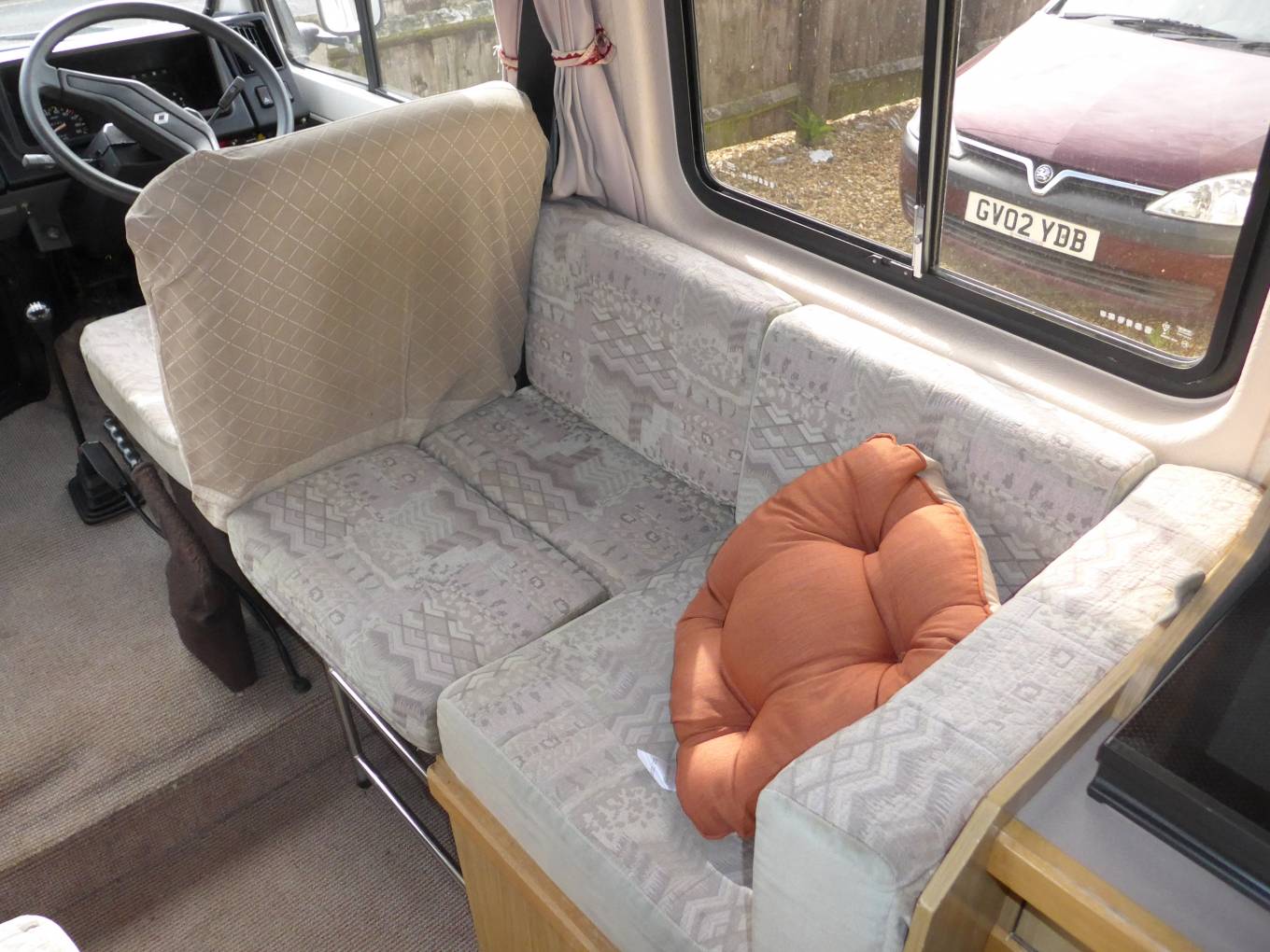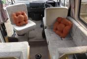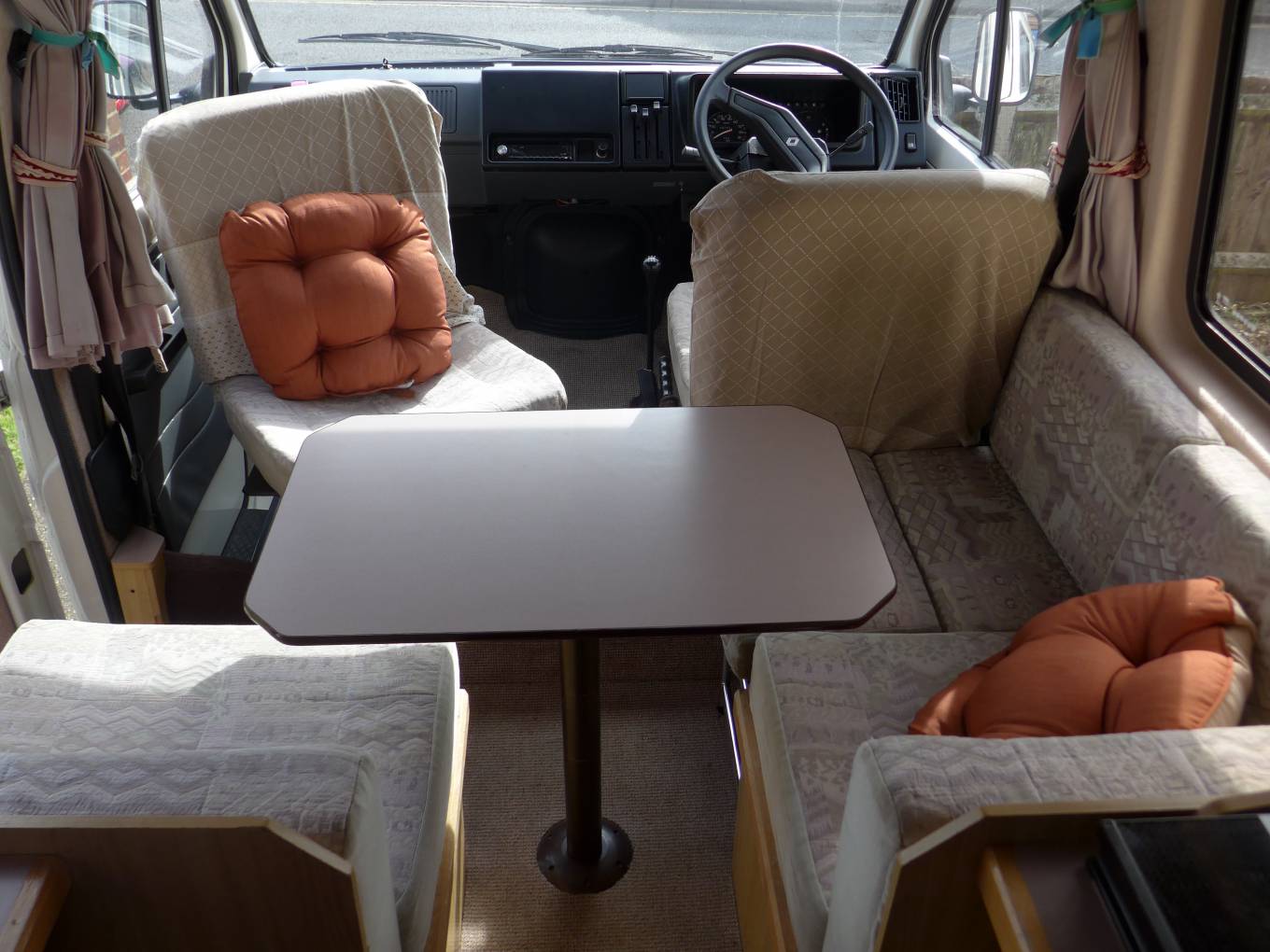 Two Captains seats with the passenger seat swivelling to provide dining for up to 4 adults with a removable dining table and two forward facing rear seats or a combination of a 2 seater sofa and single seat. The seating areas easily converts into 2 single beds or one large double bed. The two single beds are 6 foot 2 ins long by 2 feet wide or one double 6 foot 2 ins long and 5 foot 4 inches wide.