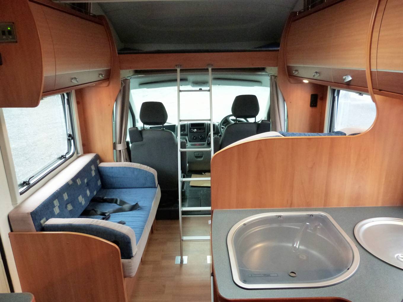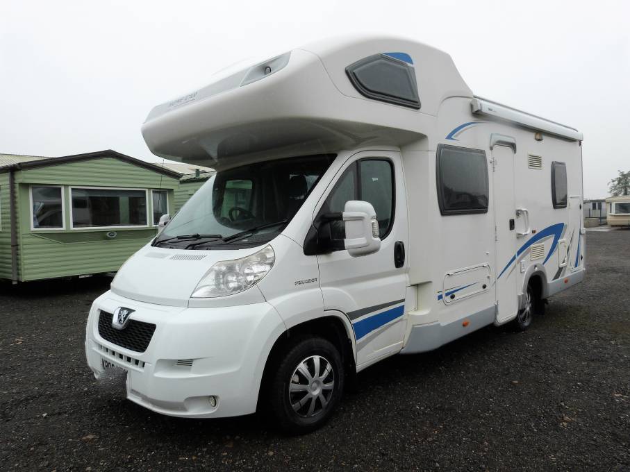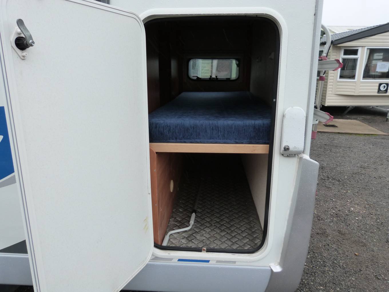 For further information please call us on 01423 609985 This is a 2009, Homecar A581, 6 berth motorhome with 6 belted seats. Built on a Peugeot Boxer chassis with a 2.2 litre diesel engine and 6 speed manual transmission. It has been used in the last 2 years as a hire vehicle and before as private motorhome and therefore comes with full habitation including gas safety inspection. The mileage is 44,390. At the rear, are bunk beds that can also be utilised as large garage space with the lower bunk raised; it will need straps to secure the bed. The toilet and sink are on the nearside and the fully enclosed shower cubical on the offside as you then move forward. There is a clever door mechanism to create lockable door for privacy to the rear of the motorhome. The kitchen is well equipped, with 3 gas burner hob, sink, draining area and SMEV grill and oven below. The large fridge with separate freezer is opposite, with Sniper TV above. Towards the front you will see the dinette with bench seat opposite. The sofa as 2 lapbelts and the forward-facing seats, 2 full seatbelts and another bed can be made up in the area. The large double bed over-cab, can also be used for extra storage space when not in use and raised to create extra headroom when driving. Up front, there is 6 speed manual transmission, radio with CD player. This motorhome is under 7 metres, can be driven by anyone having GWV of 3500kg, so a great family motorhome, with bike rack and MOT until 10/22. For any more information, to view the extended picture file or to arrange a viewing near Easingwold, please call 01423 609985 quoting reference 166639. Part Exchanges are welcomed on this vehicle.