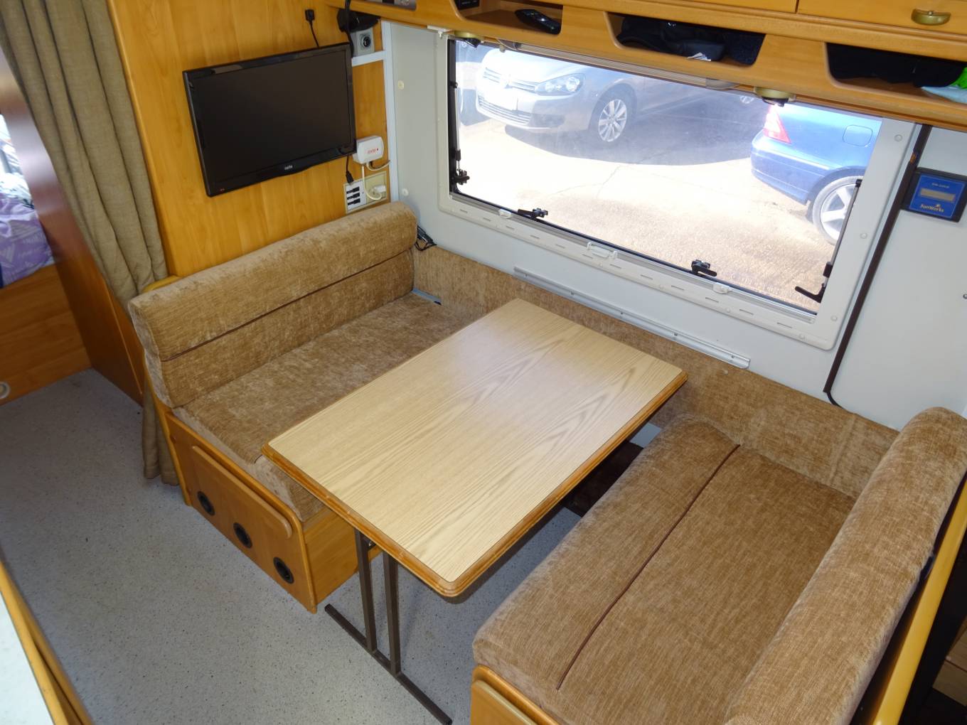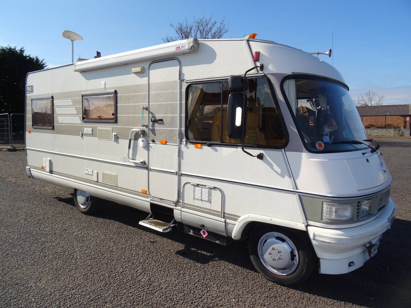 Here at Motorhome Depot, we can offer a 1992 Hymer 644 for sale. This 4 berth, 4 belt, LHD, A class motorhome really is a great example considering its age and is based on a Fiat Ducato chassis with the 2.5 litre Diesel engine and 5 speed manual gearbox. Starting at the rear, we have a fixed double bed. This area also boasts generous storage options both above and underneath the bed which can be accessed from the outside. The washroom is comprised of vanity style hand wash basin and cassette toilet. The impressive kitchen really is well equipped with a 3 burner gas hob, grill, oven, hand wash basin and a 3 way fridge. Opposite we have a 4 seat dinette area that includes 2 additional lap belts and can be converted into a double bed if required. This charming motorhome also boasts a host of extras such as satellite Tv system, solar panels, invertor, air suspension system and an after marker cruise control. Please call our friendly sales team for any further assistance or arrange a viewing.