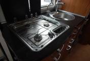 • Gas oven, grill, 3 burner hob, integrated sink with water filter so you can drink water from the onboard tank without that plasticky smell. There is a taller 3 way Dometic fridge and separate freezer compartment is standard fitment, and enables longer off grid food supplies to be kept.