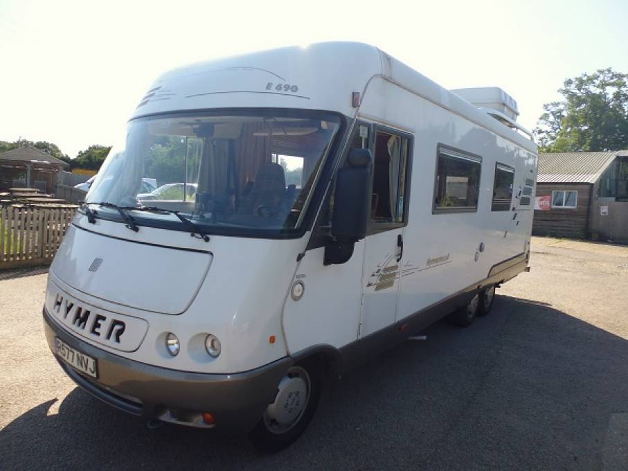 Great example of an iconic Left hand drive Hymer A class. This 690 tag axle model is a 5 berth with a French bed to the rear and the drop down overcab bed to the front. Great spec and a great layout for the serious motorhomer. Based on the Fiat ducato 2.5td chassis with a 5 speed manual gearbox . 65k kilometres from new. Dont miss. AWAITING PREPARATION