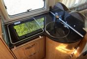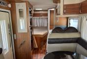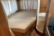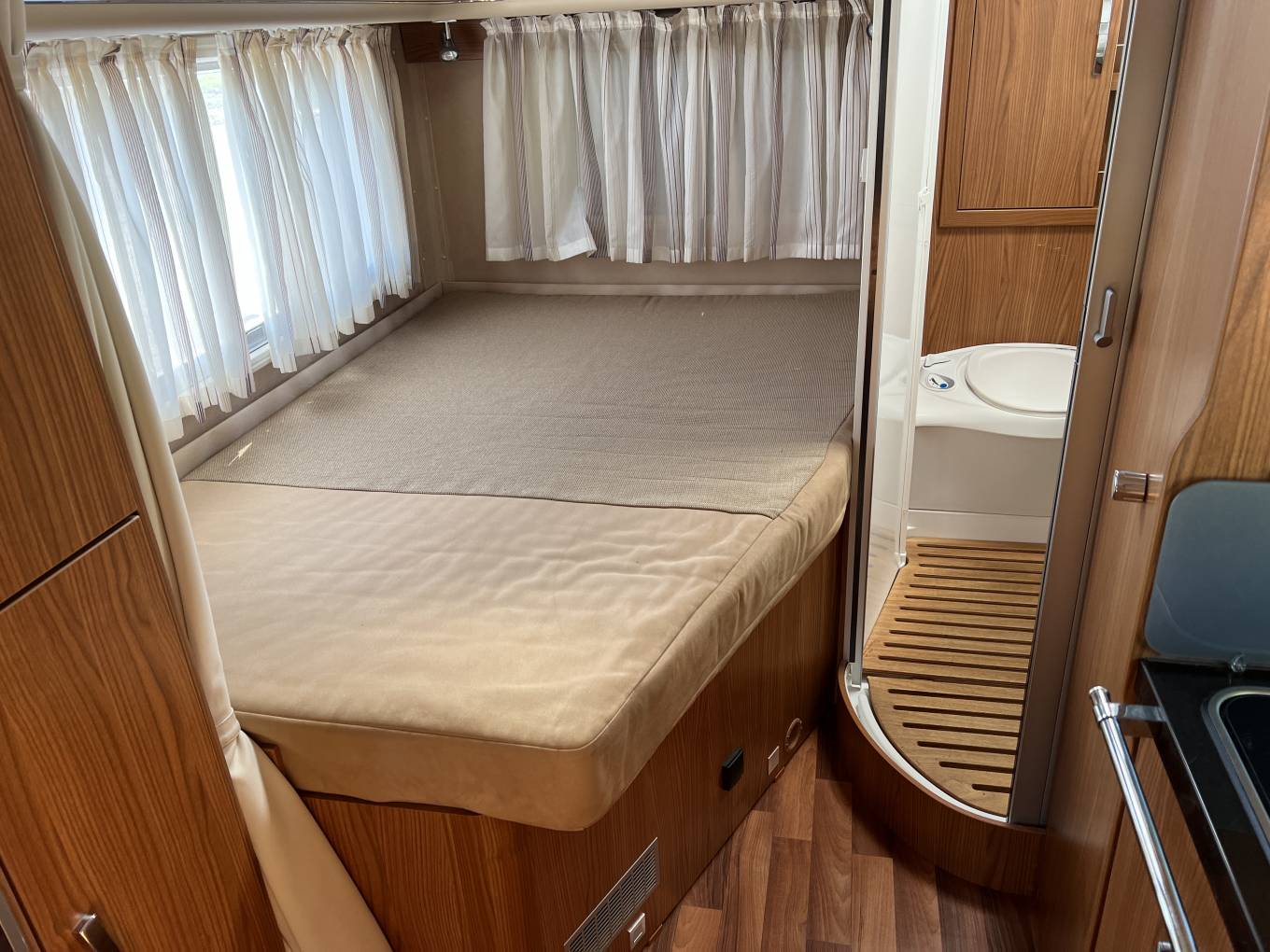 Rear French bed, with dividing Curtin, over bed storage and large wardrobe. Pull