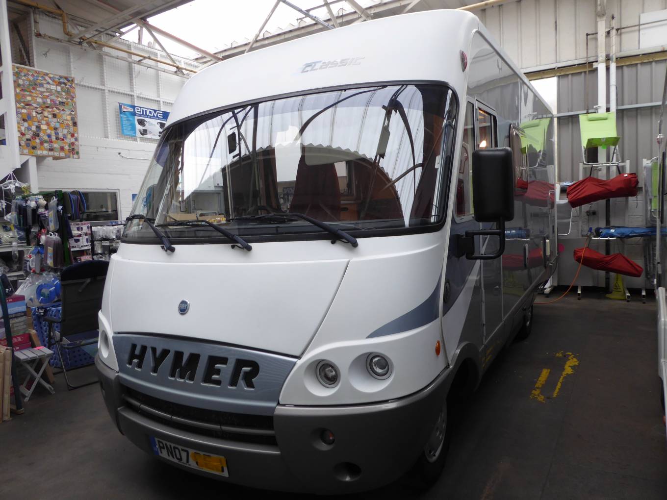 This Hymer B504 Classic first registered in March 2007, has travelled 65941 miles, with MOT expiring in March 2019. It is a great example of an A class motorhome and it is very distinctive being silver in colour. Externally it benefits from a bike rack, external side locker, access to the gas locker containing 2 Gaslow bottles and on both sides, you will find access to the rear garage which includes a fitted bike rack. Internally it is well appointed, with a single bed at the rear. As you move forward you find the washroom which has very attractive lighting with mirrors, a separate shower cubicle. Opposite is a large wardrobe with hanging space next to the kitchen which has a stove including 3 gas burners, plus a sink and extractor and rare to these motorhomes you will find a SMEV oven and grill below the worktop. In the dinette there are 2 forward facing seats with full seatbelts and the front seats swivel to create an ambient dining area in this 3-berth motorhome. The over cab pulls down easily when the front seats are collapsed, and this creates a double bed that measures 6ft 1inches x 4ft 3inches. In the cab area you will find a 5-speed manual gearbox, cab air con, radio/CD player, and audible step alarm. The timing belt was changed in March 2017 and the vehicle has also passed the tests for use on the roads in Germany and Switzerland. It is in very good condition overall and should be viewed at the earliest opportunity in Harrogate, North Yorkshire.