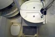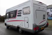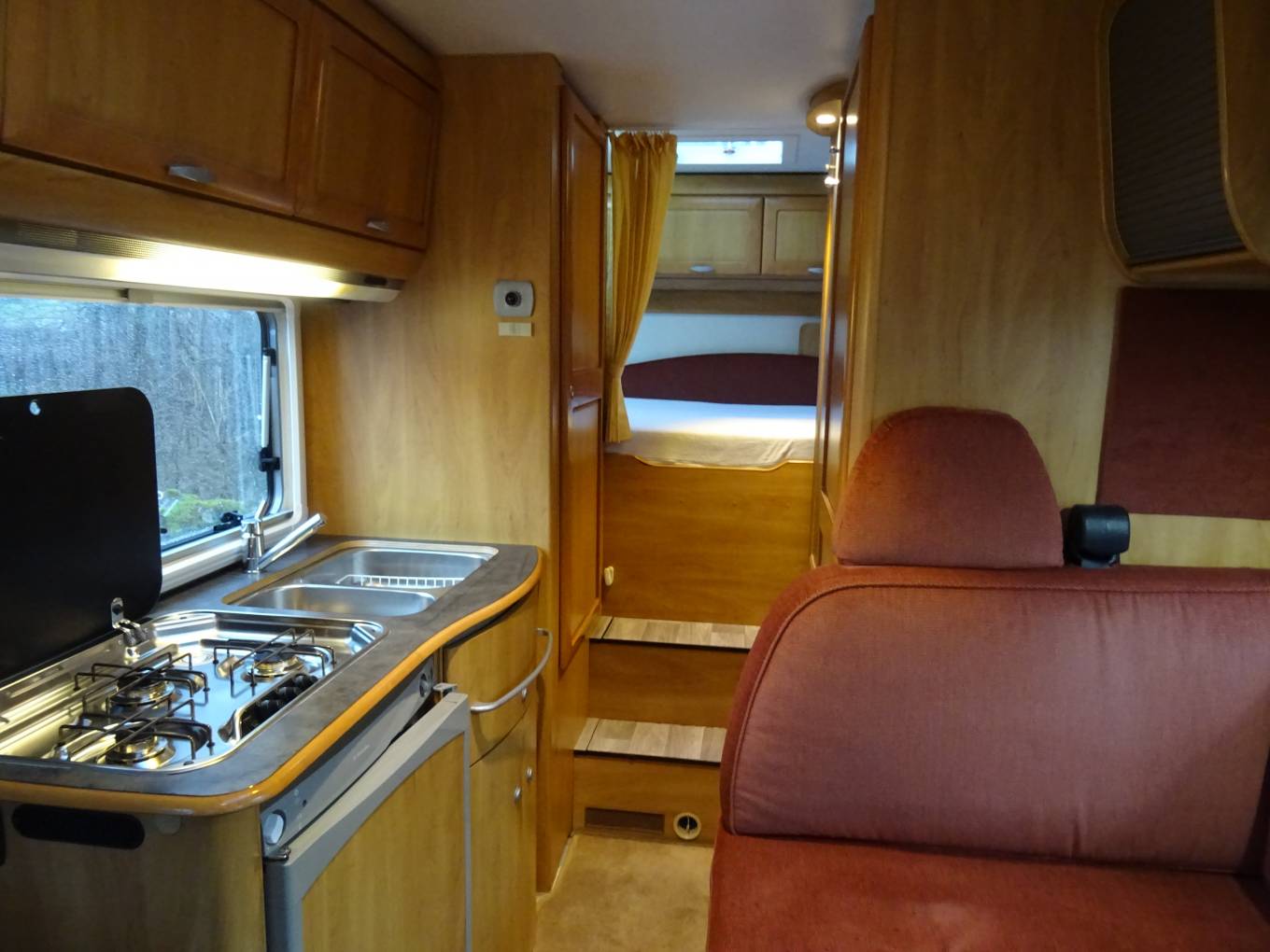 At the rear of this Motorhome is a transverse fixed bed which is fixed above a garage area, all this fitted into a very compact motorhome.