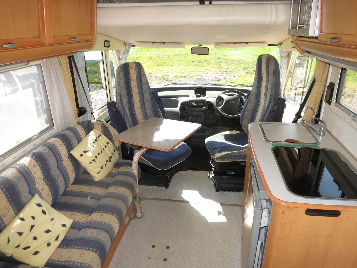 This motorhome is based on the excellent Fiat 2.8L Diesel with 44500 miles on the clock. The inside boasts a rear fixed bed with storage. The center dinette is large with a pull down cab bed. Other excillent features and extras that this motorhome boasts Include: