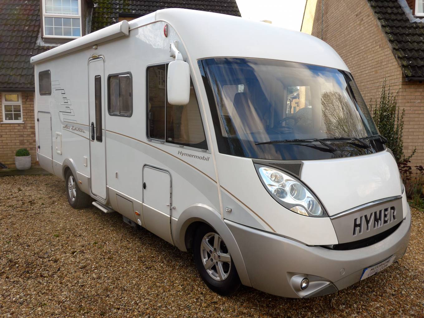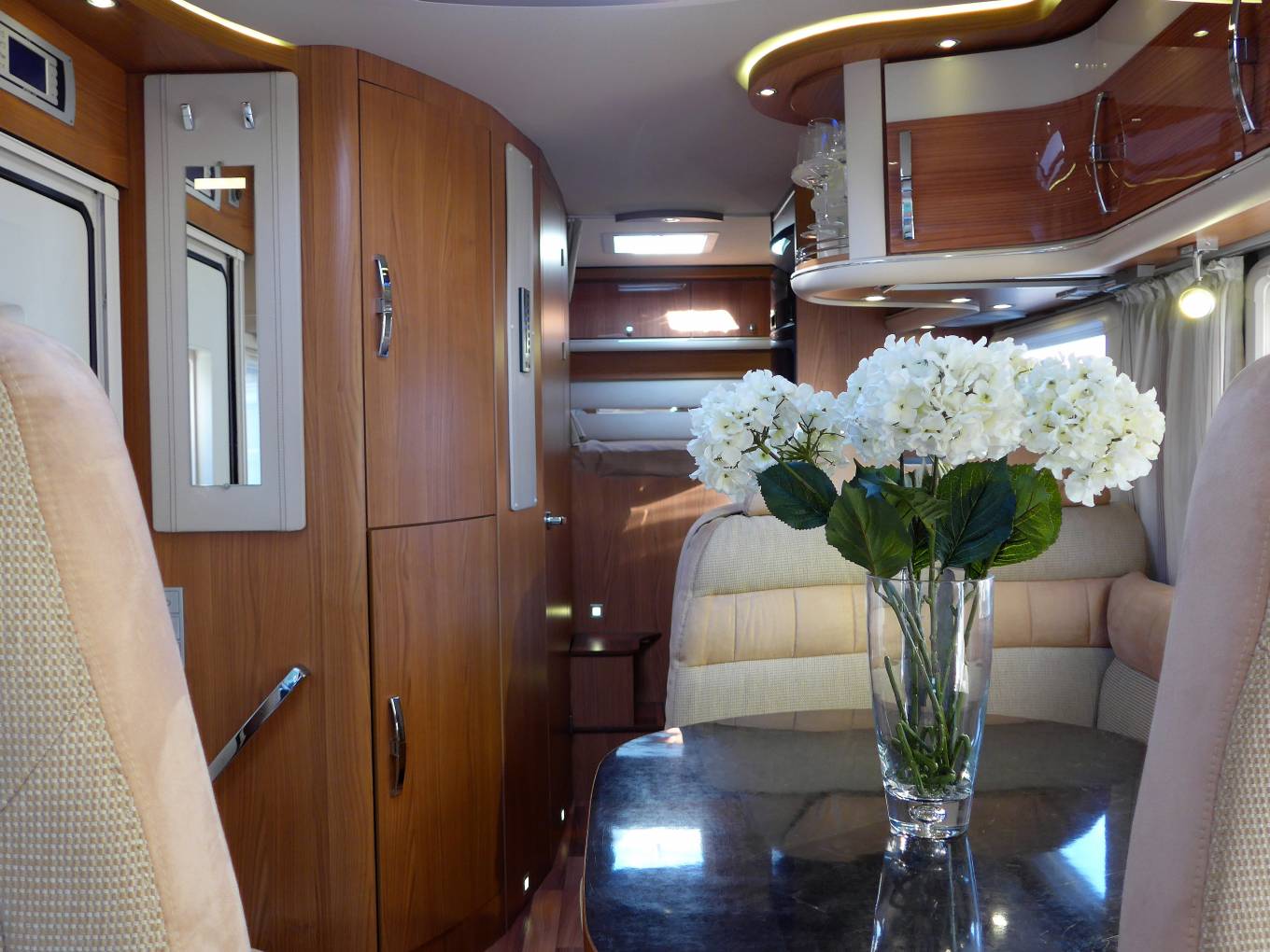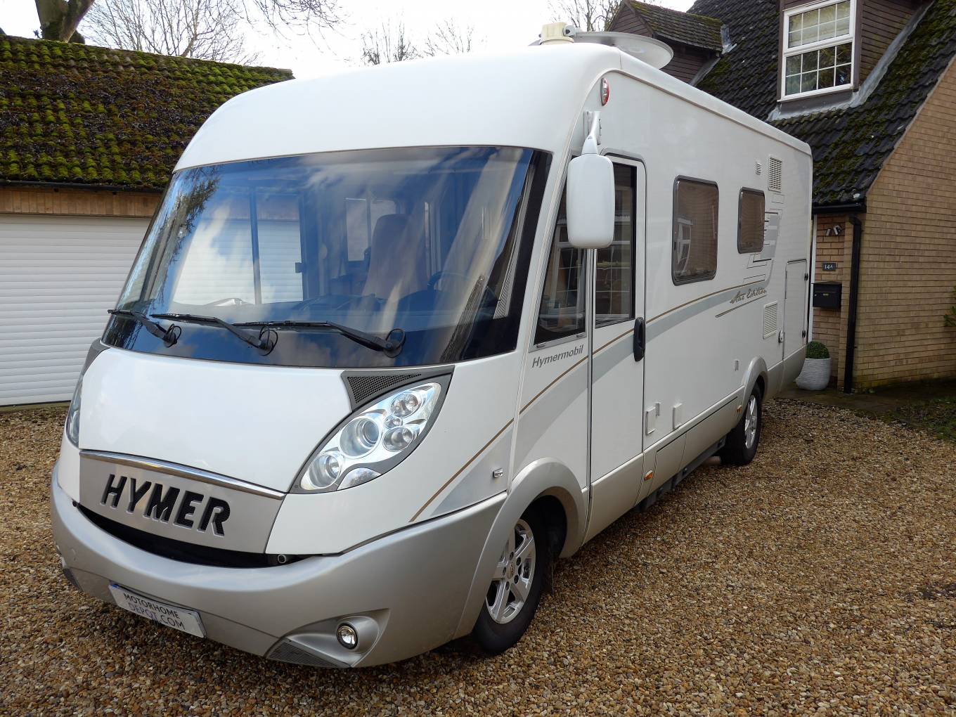 Ultra modern, exclusive HYMER headlights. Left hand Drive. Exclusive and elegant, high quality interior, beautiful lounge seating group with intricate upholstery design with two matching upholstery fabrics. Light system with individually adjustable lighting scenes for pleasant mood lighting. Illuminated Cocktail Cabinet, Concealed TV. Cab Air Conditioning.