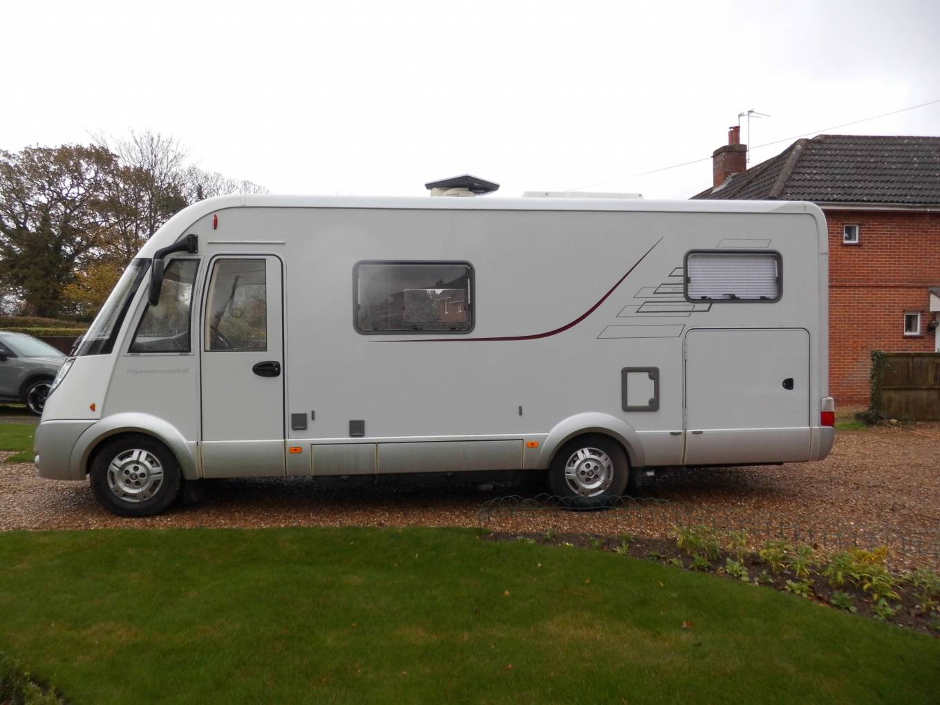 STUNNING HYMER B614SL A-CLASS 2008, in very good condition inside and out. First registration 01/08/2015 in the UK. Cab door with electric window with a 2.3cc engine, 6 speed manual, MOT until August 2021, comprehensive service history, 4 berth, 4 belted seats with transvers rear bed and drop down double bed over the cab. Half leather upholstery seating with two captain seats and one bench seat based around an extendable table. Spacious kitchen with large fridge and freezer, oven and grill and lots of storage. Lovely spacious washroom with separate shower with lots of storage. Outside there is a huge garage area with doors each side for easy access, outside locker storage, satellite system. Drive away Oxygen awning, full winter cover. Located in Norfolk. For more information, extensive photo file containing approximately one hundred pictures for an in depth virtual tour of the vehicle before you come to view, and to book a viewing, please call Simon or Maria on 01603 381972 or 07757 221350. VIEWING BY APPOINTMENT ONLY. Free 14 day drive away insurance is available with this vehicle. We welcome buyers from across the UK and Europe, low cost delivery is available.