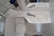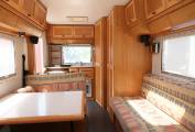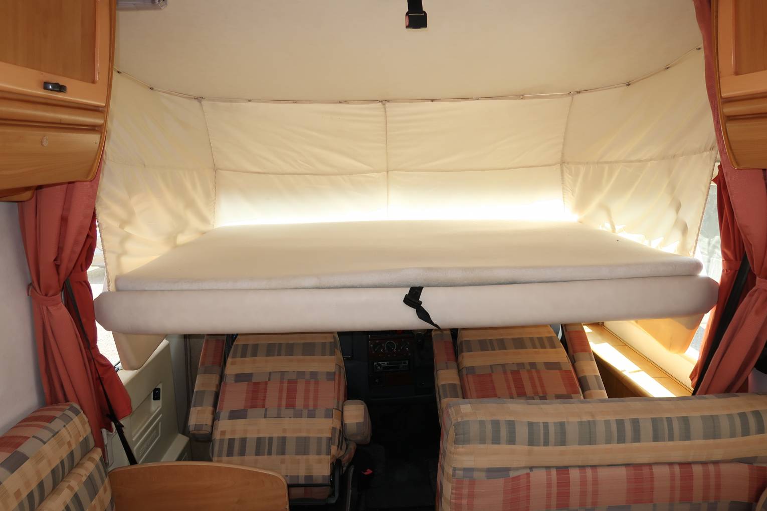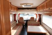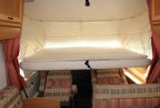 The sleeping arrangements consist of a large pull down bed over the cab which measures approximately 74 x 54 inches. The long sofa can be used as a single bed as it measures 71 x 28 inches and the rear and forward facing sofas also convert into a double bed giving you potentially 5 berths in total. Above the lounge are storage lockers on both sides. There is additional storage underneath the large sofa as well as storage in the external side lockers.