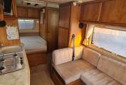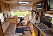 To the front of the motorhome you will find a L-shape dinette area with seating for everyone, including two extra seats when you swivel round the driver and passenger seats.