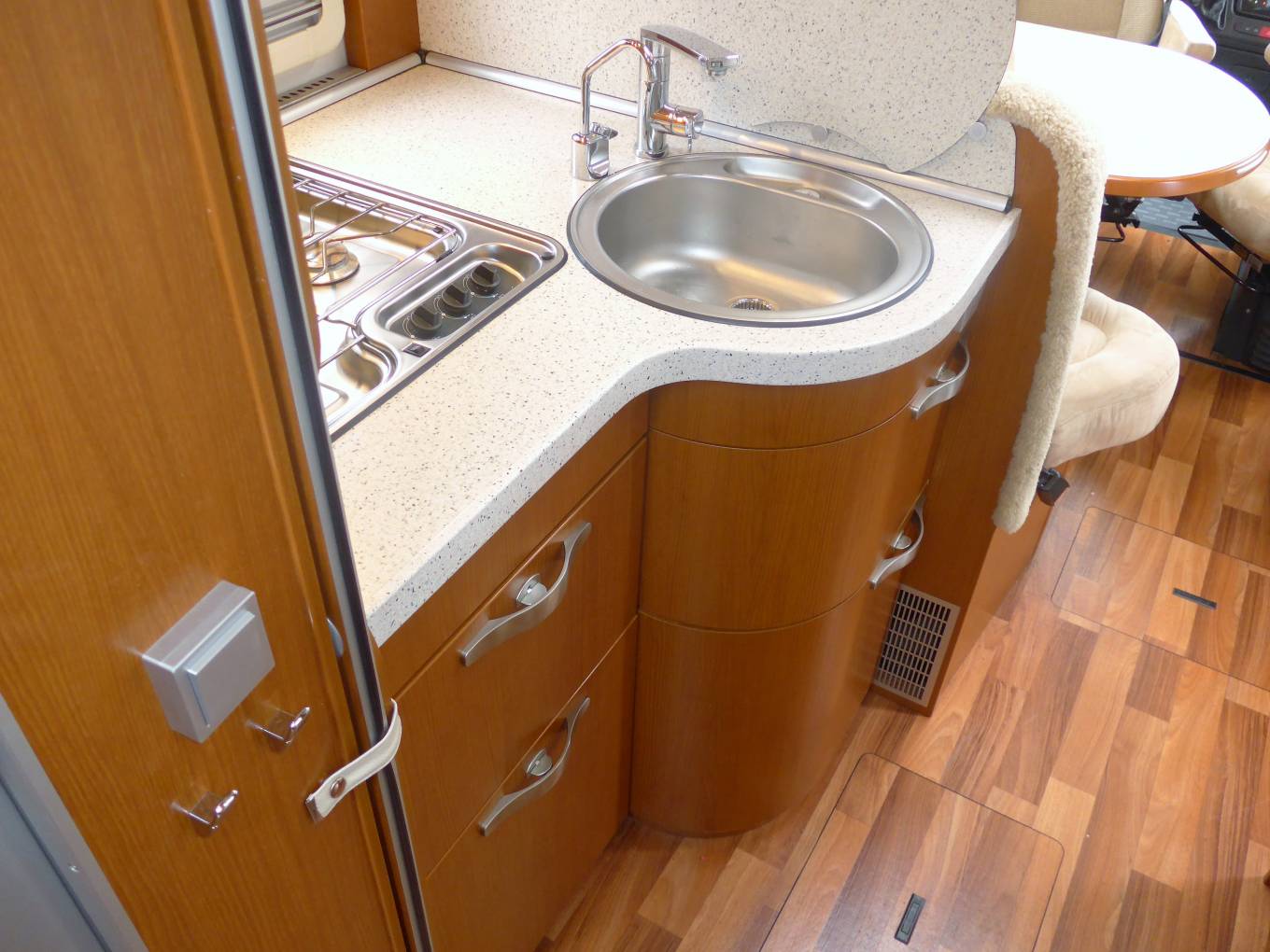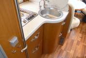 Externally there is a large garage with opening door to both sides. Wind-out awning with LED lighting strip. Allow wheels. Alugas Refillable Gas and Armitage Tow bar. Oyster 85cm self seeking satellite dish. Abus additional security locks. Thitronic factory fitted Alarm, Scorpion Tracker ST50 Recovery System