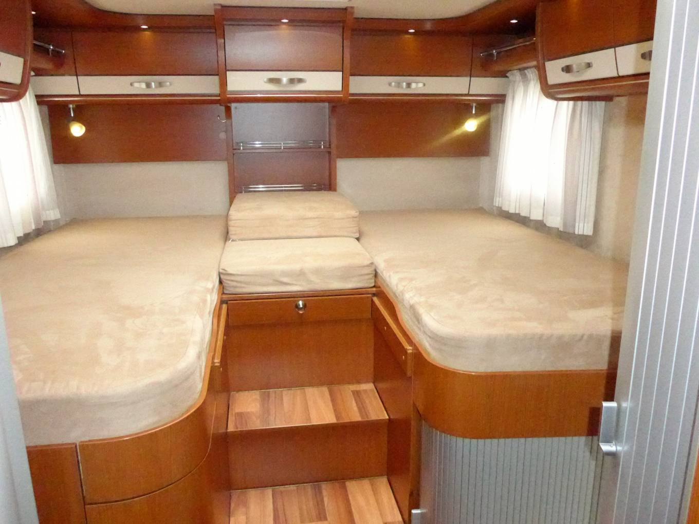 HYMER B678 4 Berth Luxury German A Class Motorhome with Twin Fixed Rear single beds which can convert to a Large Double or can be used as 3 singles, Large Garage, Pull down double over Cab, Separate Shower. Powerful 160 BHP 3.0 litre Automatic. Left Hand Drive.
